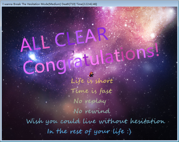 0人《I wanna Break The Hesitation》是一款由“刺er君”制作开发的动作闯关小游戏。无boss,有3个stage,特点是很坑,道中的难度很高。地图里密布着刺儿,一碰到就会死亡。