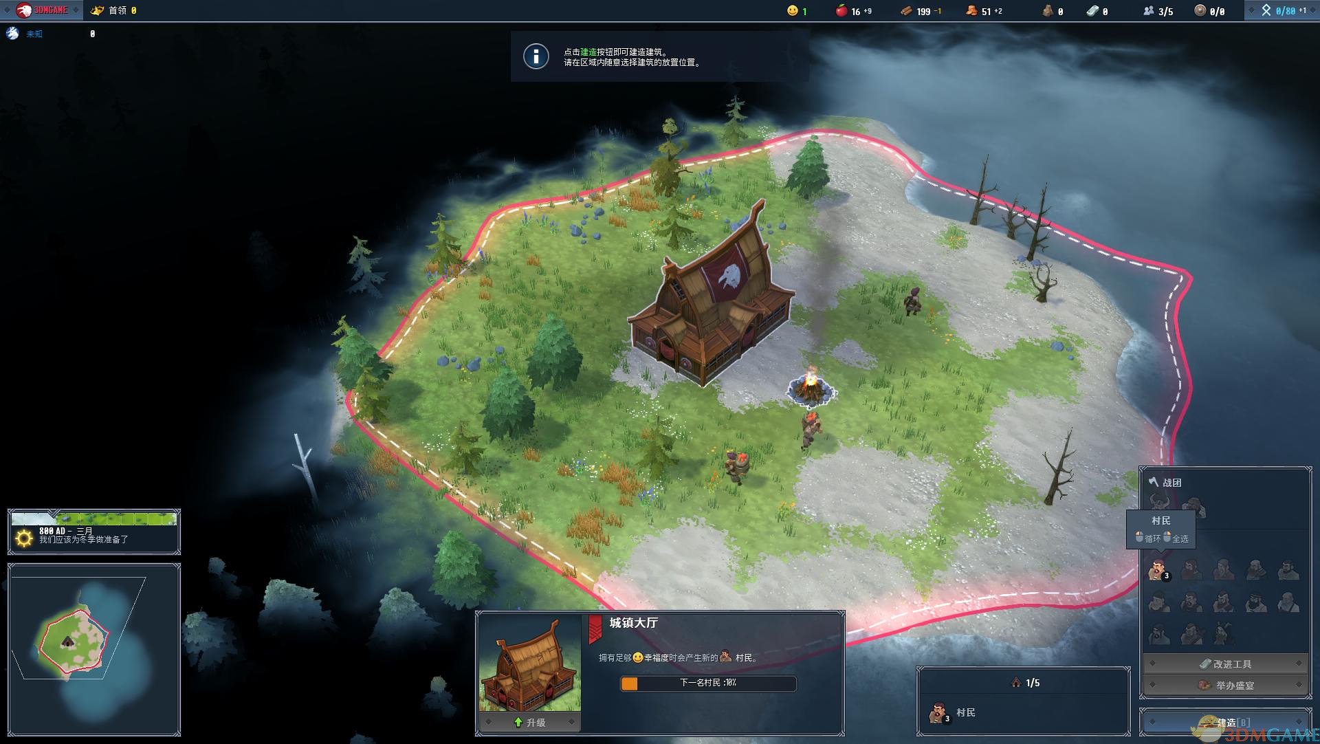 在有限的土地上建造各种建筑,如住宅、农场、兵营、矿山等,每个建筑都有其特定功能和所需资源,需合理规划布局。
