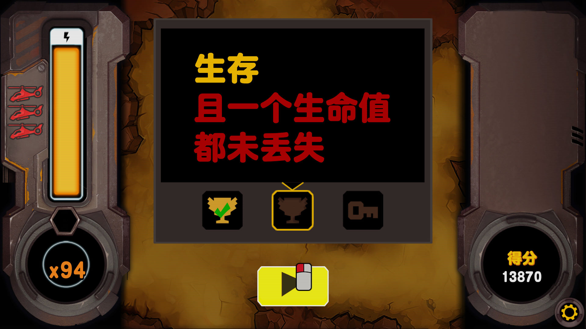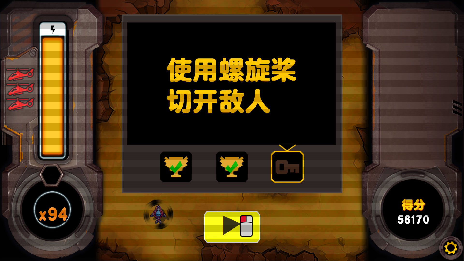 射杀、轰炸、切砍大批敌人吧——这是一款华丽的弹幕射击游戏动作游戏,灵感源自经典街机游戏!用大量武器发射子弹,让敌人身上布满弹孔,或者接近敌人,用致命的旋翼叶片,一边切开敌人,一边令来袭的子弹、激光偏转方向并避开毒气云!