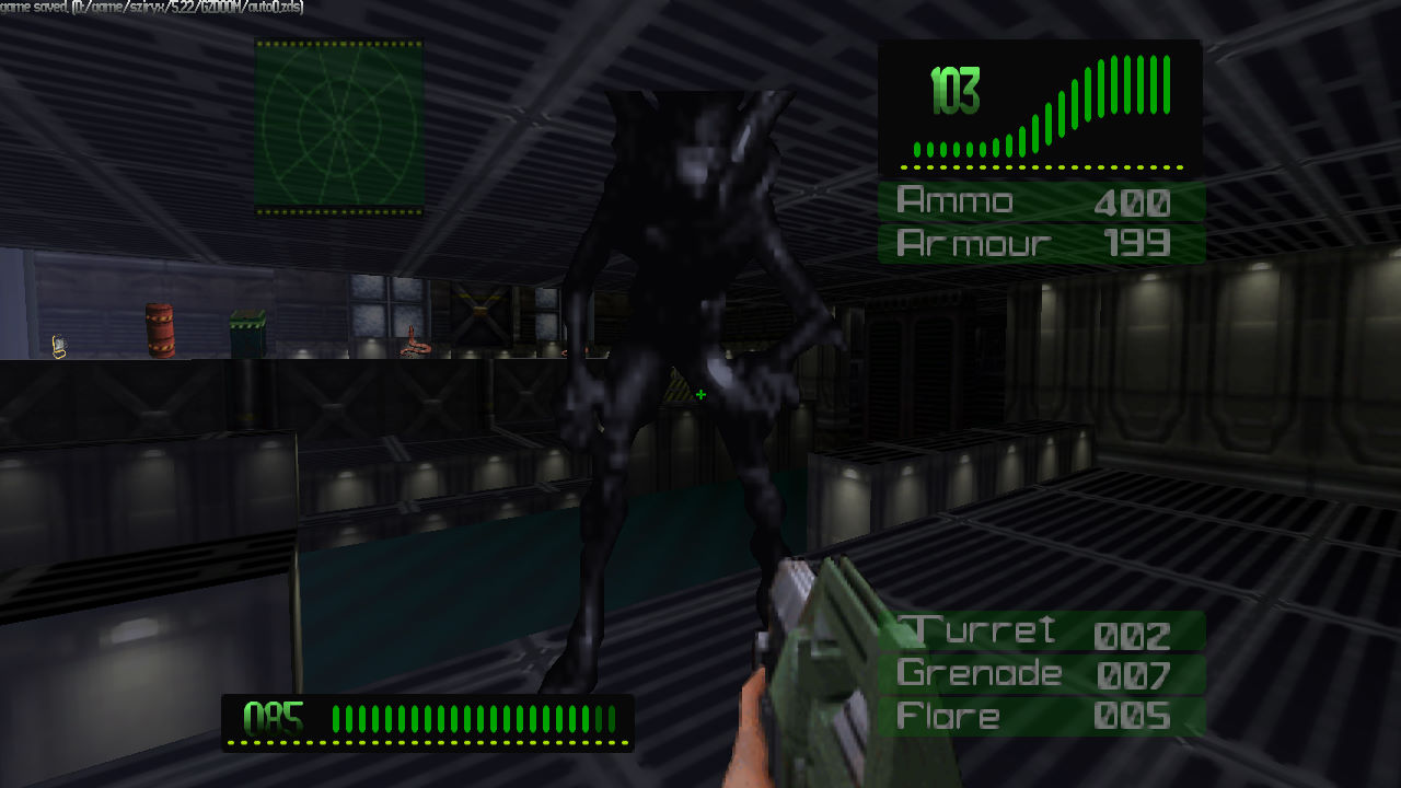 0人将游戏目录下“Alien Trilogy Beta 1.1.pk3”拖到gzdoom.exe下打开MOD