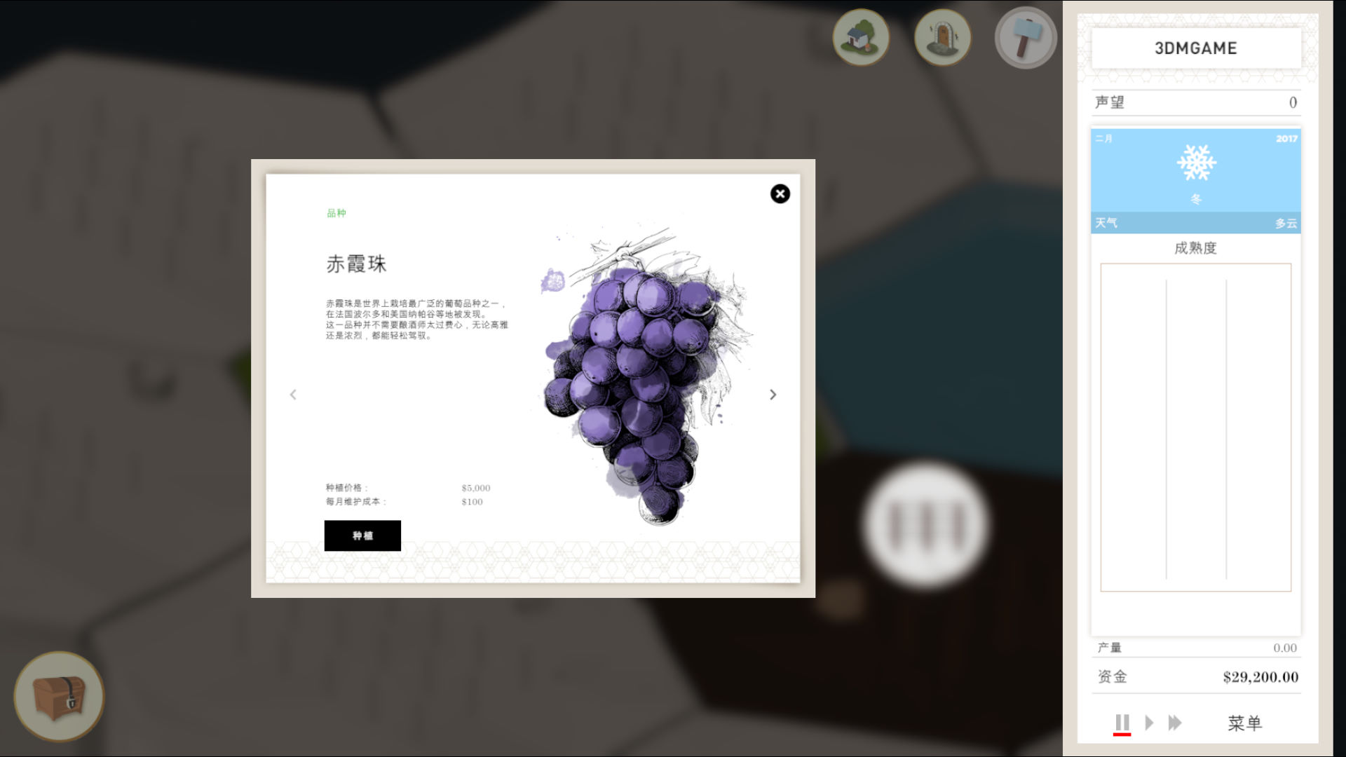在游戏中,你将成为一位酒庄主人,种植多元葡萄品种、创造不同的葡萄酒,并不断扩展你的庄园和产业。天气变幻无常,突发事件接踵而来,面临无数挑战,你有信心让酒庄获得成功吗?