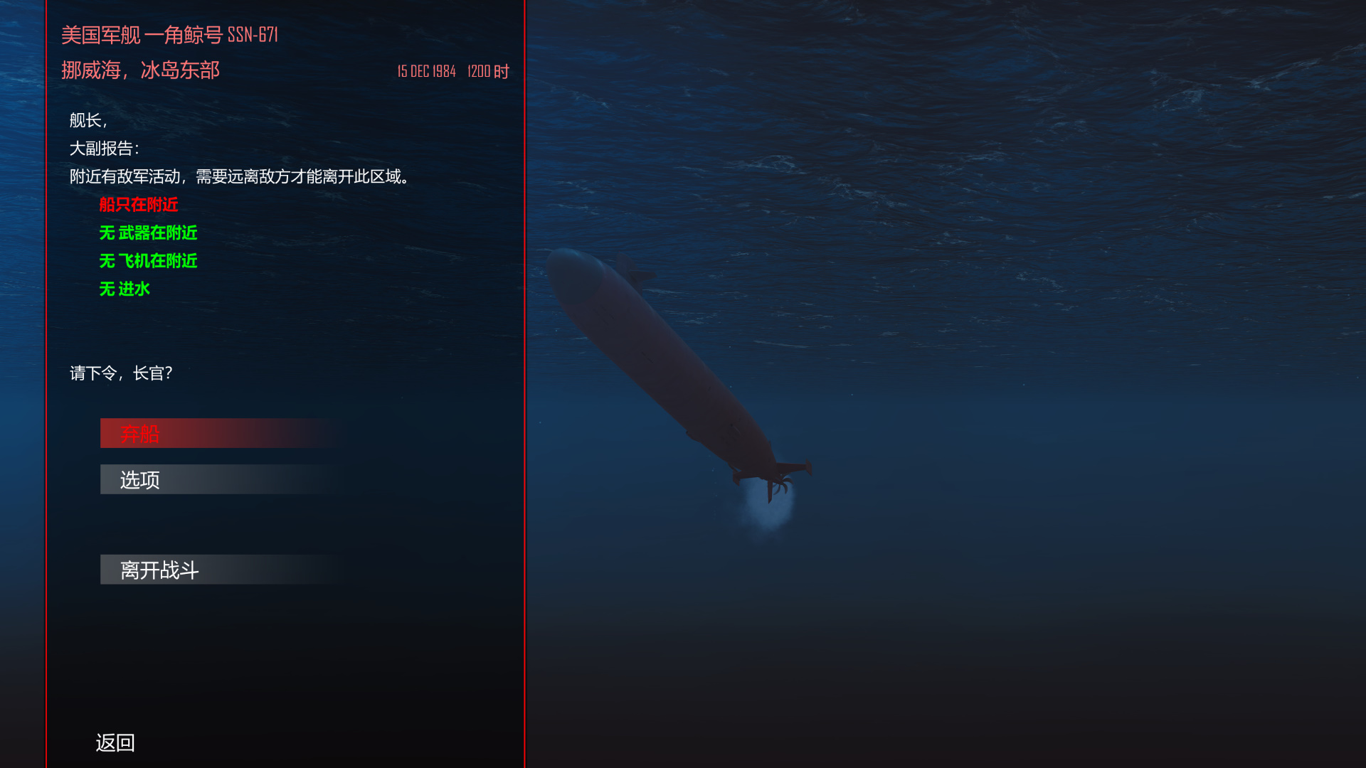 当你跟踪到前往冰岛的苏联登陆部队后,现在是计划攻击的时候了。你打算悄悄的靠近用鱼雷攻击登陆舰,然后从混乱中逃跑吗?还是冒着护航舰队的反击用远程导弹攻击呢?有另一艘没探测到的潜艇可能听到你吗?猎人是否会变成猎物?你会在这冰冷的海洋中生存下来吗?您将拦截运输船队,两栖登陆,渗透任务,与敌人的军舰,潜艇和飞机作战。不过幸运的是,你的潜艇上有线导鱼雷,反舰导弹以及偶尔还有海豹部队。