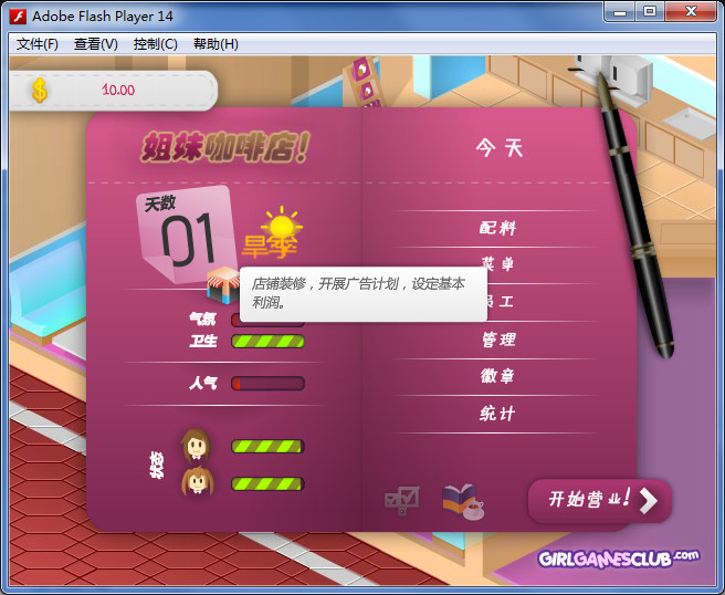 按大体上来讲,这是一部添加了MM元素的经营类游戏~在这个卡通般的店铺里捎上这可爱俏皮的BGM,游戏带给我们将是一种很愉悦的心情,我们将在这种轻松的状态下分配好每一步该怎么做,从材料到广告,如何应对每一个客人的需求,将效率最大化,将店子经营成一个很火的潮流咖啡店?这就要看玩家的决策力罗~你能赢得这对姐妹花的欢心吗?