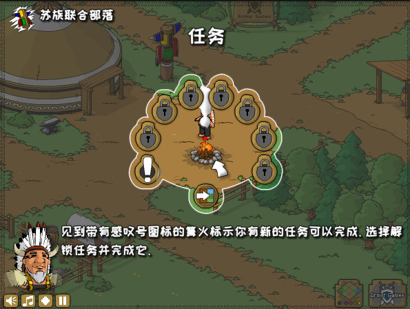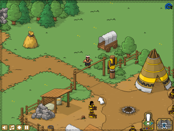 某印第安部落刚进行了领导交接,年轻的新酋长上任后却发现自己还没有得到子民们的拥护,族人游荡于丛林和草原中,于是新酋长决定亲自出马,找到不服管教的族人并把他们带回家……很难为这款游戏定义类型,但游戏的设定倒是别出心裁。
