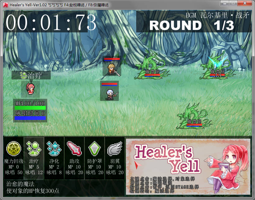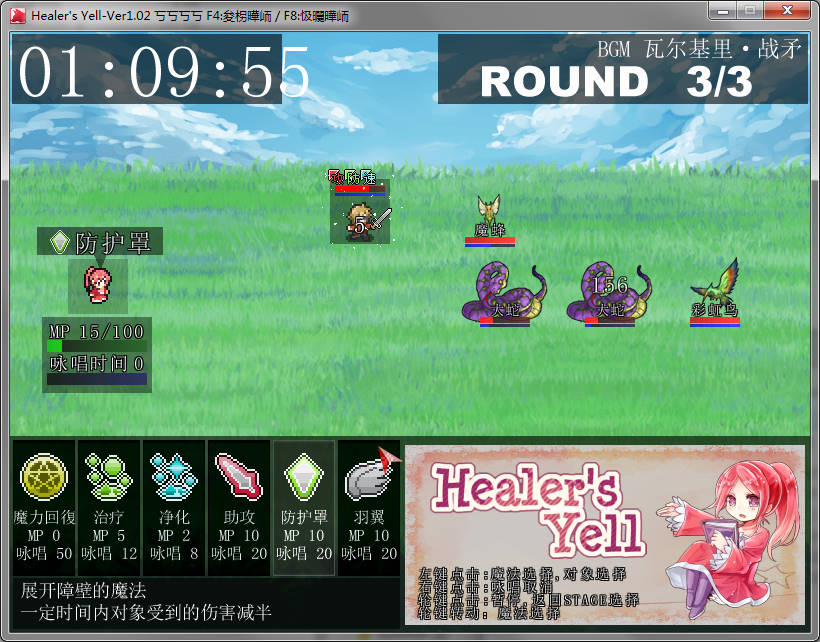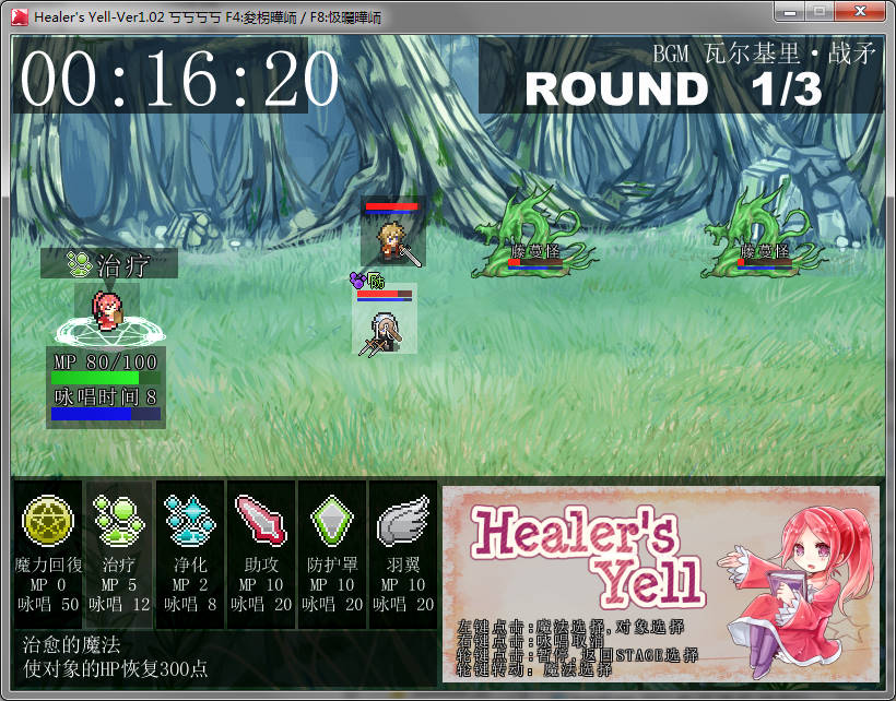 《Healers Yell》是由Strayひろま制作的一款角色扮演类游戏,游戏内容就是女主用辅助魔法帮助伙伴们打退怪物,最后有生存模式,可以挑战一下。喜欢这款游戏的话欢迎下载。