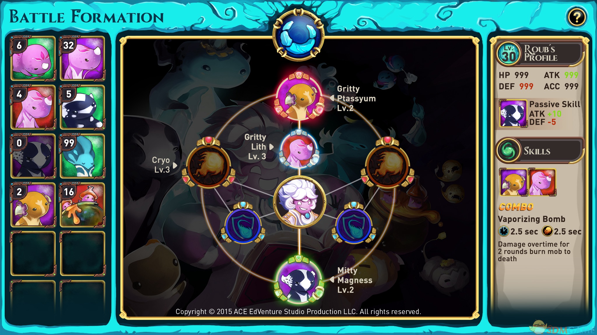 本游戏战斗上则采用了ATB回合制战斗方式,双方的行动顺序会根据屏幕上方的进度条呈现。除了战斗,游戏中还设有了化学元素合成玩法。根据各种各样化学元素的属性,玩家便可以组合成新的武器以及道具。这个系统在游戏中有着很重要的地位,因此想要战斗变得轻松就得多利用化学合成的力量了。