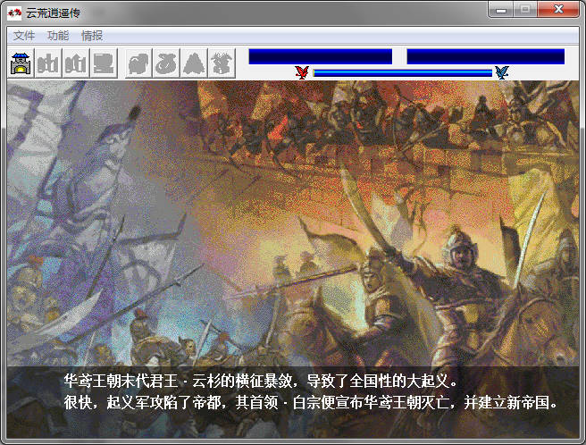本作讲述了在一块名为“云荒”的异世大陆上,年轻英杰易逍遥的人生轨迹、金戈铁马,并以此为故事基线、以各种虚(zhen)构(shi)的角色齐聚的异世云荒而展开的一段传奇。但太过于具体的故事原谅鄙人实在无法一语道明,请各位玩友进入游戏自行玩赏。