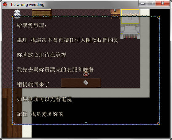 《错误婚礼(The Wrong Wedding)》是由h812020制作的一款角色扮演类游戏,游戏讲述了一名女子与一名男子结婚了,然后女子从床上醒了过来,却不知道自己已经结婚了,这到底是怎么一回事呢?