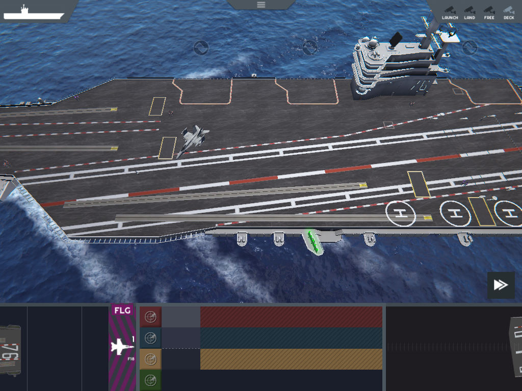 把右边的飞机和直升机装上去,准备好所需的军事任务。管理发射和降落的飞机,避免坠毁,如果不小心失误可能会蔓延整个甲板破坏多架飞机并且损坏船舶。