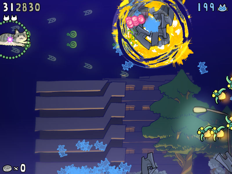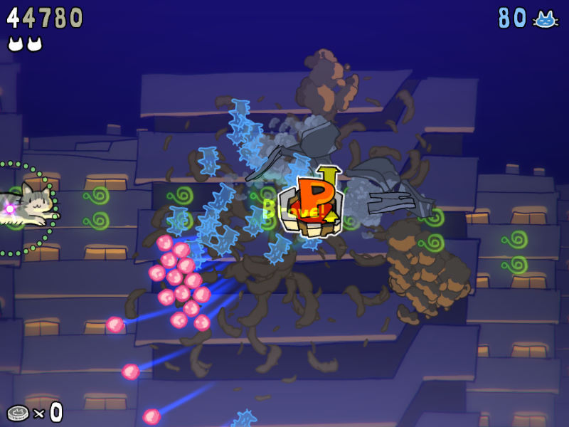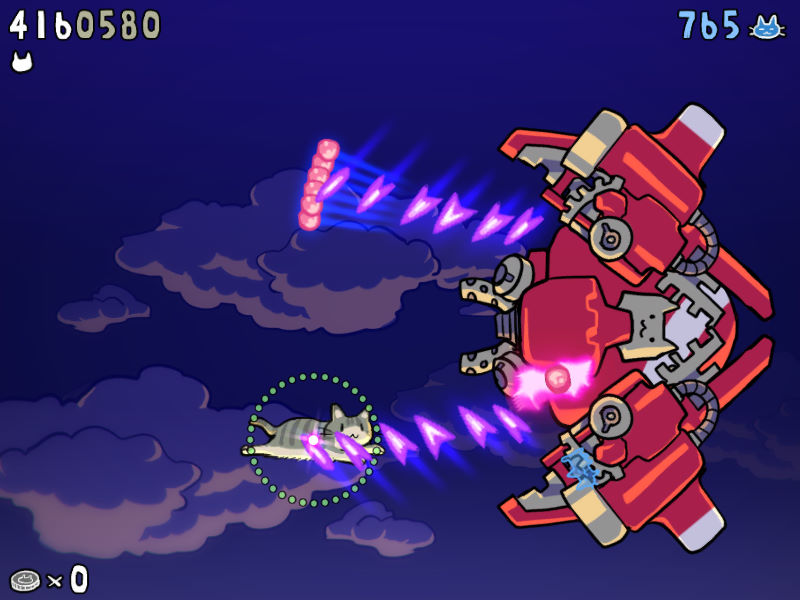 该作是一款2D横版射击游戏,这一共有着10000只萌物可供玩家挑战。在游戏中玩家只需操控一只飞天小猫咪在各个地图中穿梭冒险,躲避以及打败敌人即可。另外,游戏还有3种难度以及7个关卡可供玩家选择,在漫天的弹幕中战斗,简直痛快淋漓!