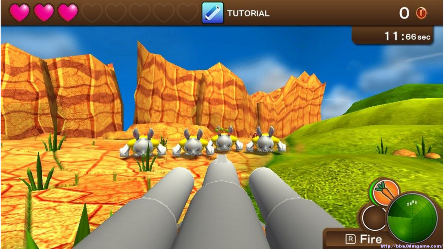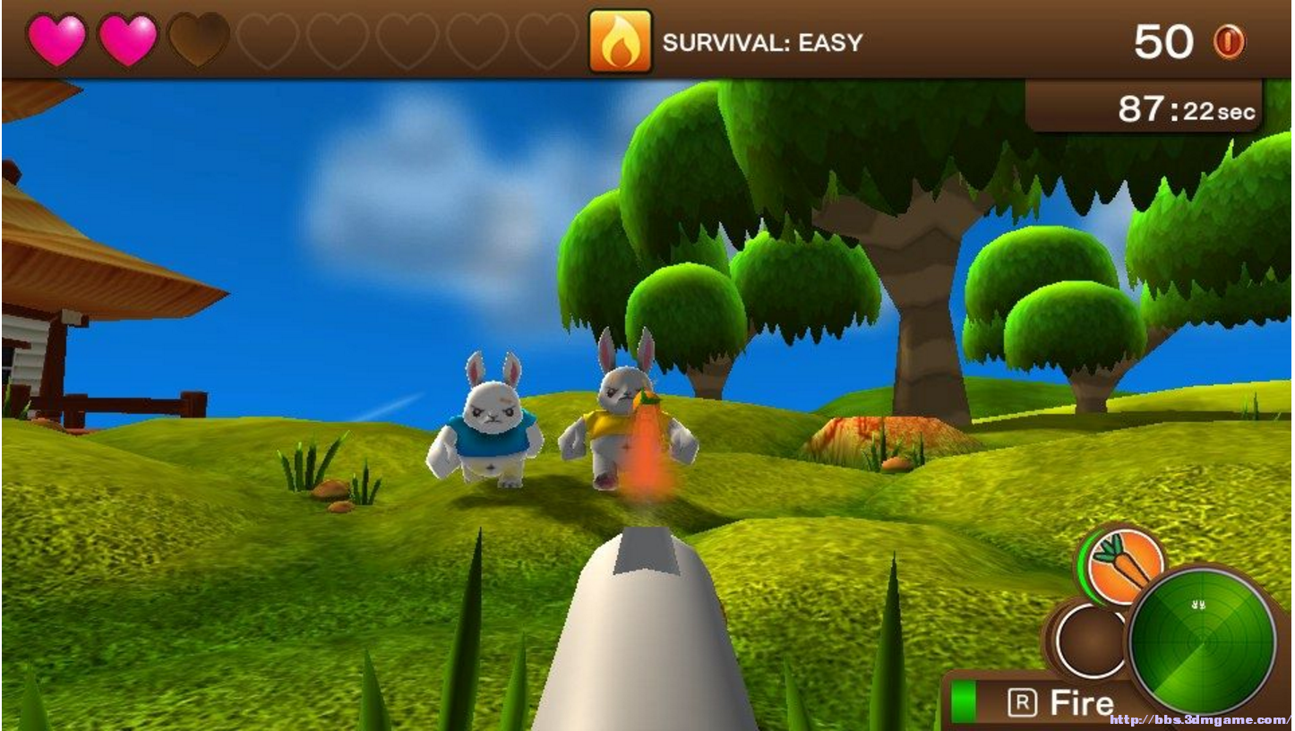 玩家要与不断来袭的邪恶的兔子集团进行战斗,而武器不是飞弹或子弹,而是从枪口中打出去的胡萝卜或西瓜等。本作的难度会根据玩家的表现进行改变,而且在各个关卡还会出现不同的兔子,比如说在空中飞的兔子。兔子们为什么变得如此凶恶,为什么会袭击主角,这一切都是一个谜。