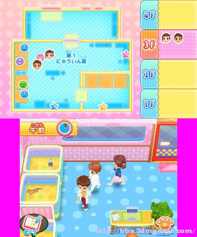 游戏中兽医的工作除了基本的宠物治疗以外,还包括宠物的营养管理、照料等各种各样的内容,而这些基础工作在游戏中均以小游戏的形式进行,作品内的小游戏有10种以上。另外这次新作还将加入一种被称为“夜间勤务”的模式,玩家在夜间值班的情况下还将对住院的宠物们进行检查,有时候还会出现从笼子中逃跑的宠物搜寻工作。