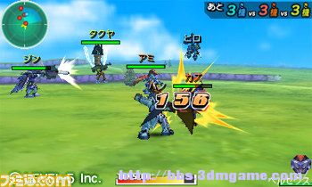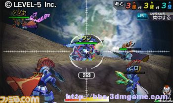 上屏是有3D效果的LBX,和手掌差不多大小的小型机器人搬上3DS平台后感觉更真实了。而下屏则可以使用触笔来调整各种部件和简单操作。当然,战斗场景也是全面3D化的,数值属性和选择菜单被放在下屏中,而上屏就可以有更开阔的视角来体现战斗的爽快感了,打开3D效果后的必杀技看起来相当拔群,推荐大家要开3D玩哦。