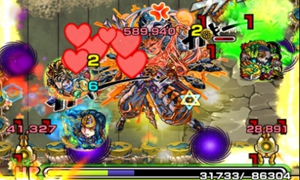 除了属性元素之外,最有趣的元素就是怪兽的“速度指数(スピード)”了,速度指数会反应在怪兽的冲刺持续力,速度快的怪兽可以制造更多的撞击次数,若再搭配怪兽自身的加速系技能与画面上的“加速鞋”,冲刺的持续力将再次提升。