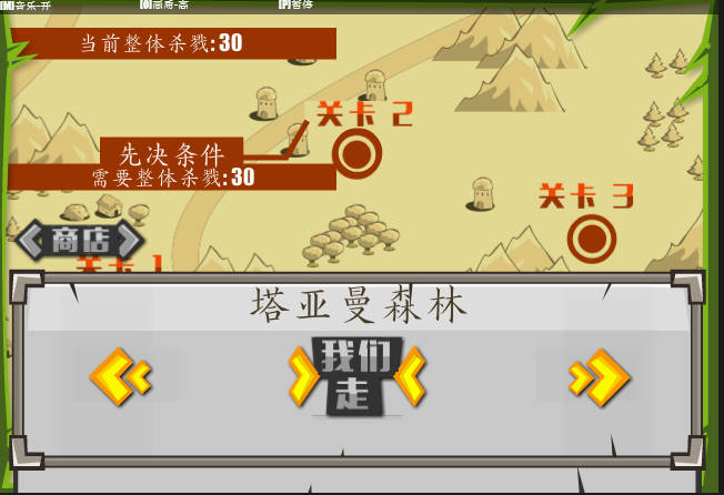 注意子弹有限哦,同时要收集黄金从而购买升级。