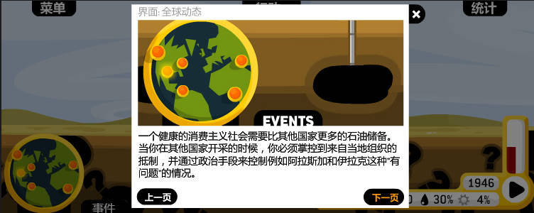 2.为了不触发其他剧情,一直保持开采大于需求,能很轻松办到的,虽然油田探测随机的,不过到了2020年左右吧,估计每个油田都要开采,这时那些股东就不会叽叽歪歪了。为了保持持续性开采,小油田千万不要用中型矿井。多开采出来的石油好像是浪费了哦,所以也不要图省事一下全放上矿井。最好的做法莫过于前期大量做政府任务打开油田地图,在各地图的大油田上用小开采机保持开采量大于需求,然后根据需要徐徐拆掉换中型或者开采小油田,保持全世界范围的少量均衡开采。不要吝啬,钱会越来越多....