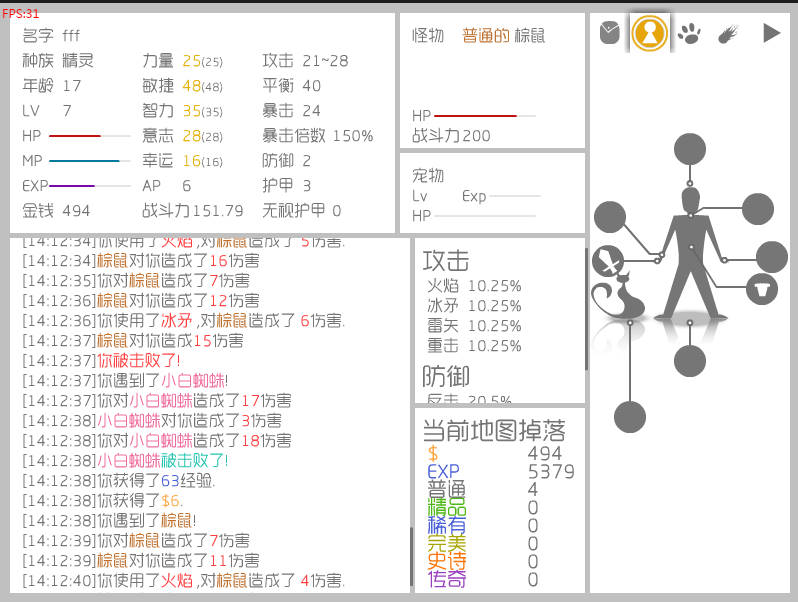 《战斗无止境(Battle without End)》是由Crit Games制作乐译汉化组汉化的一款RPG休闲挂机游戏。这款挂机游戏完爆以前所有挂机游戏,装备系统,装备属性随机,装备升级系统,技能系统,称号系统,转生系统,无所不有!当然,最主要的是这款游戏并不完全挂机,只有打怪是自动一直进行的,其他的都得自己来