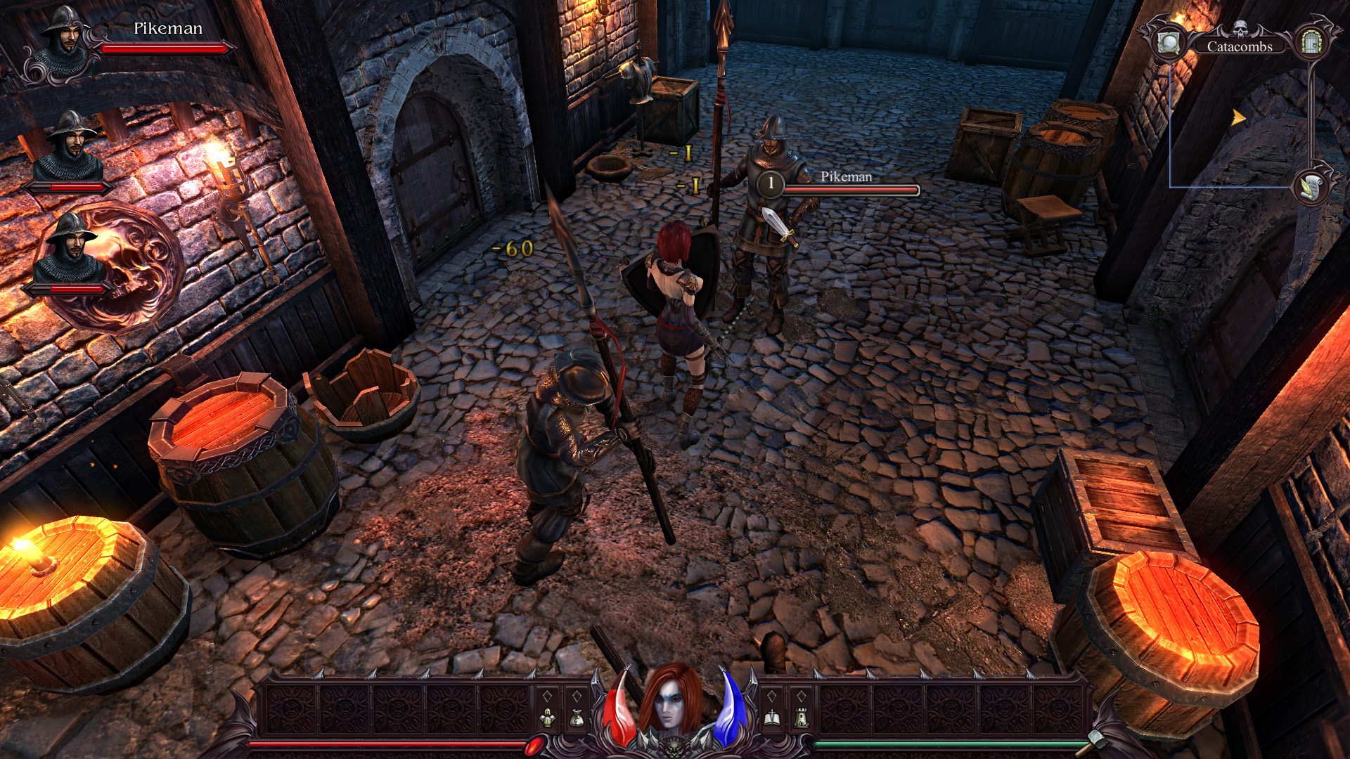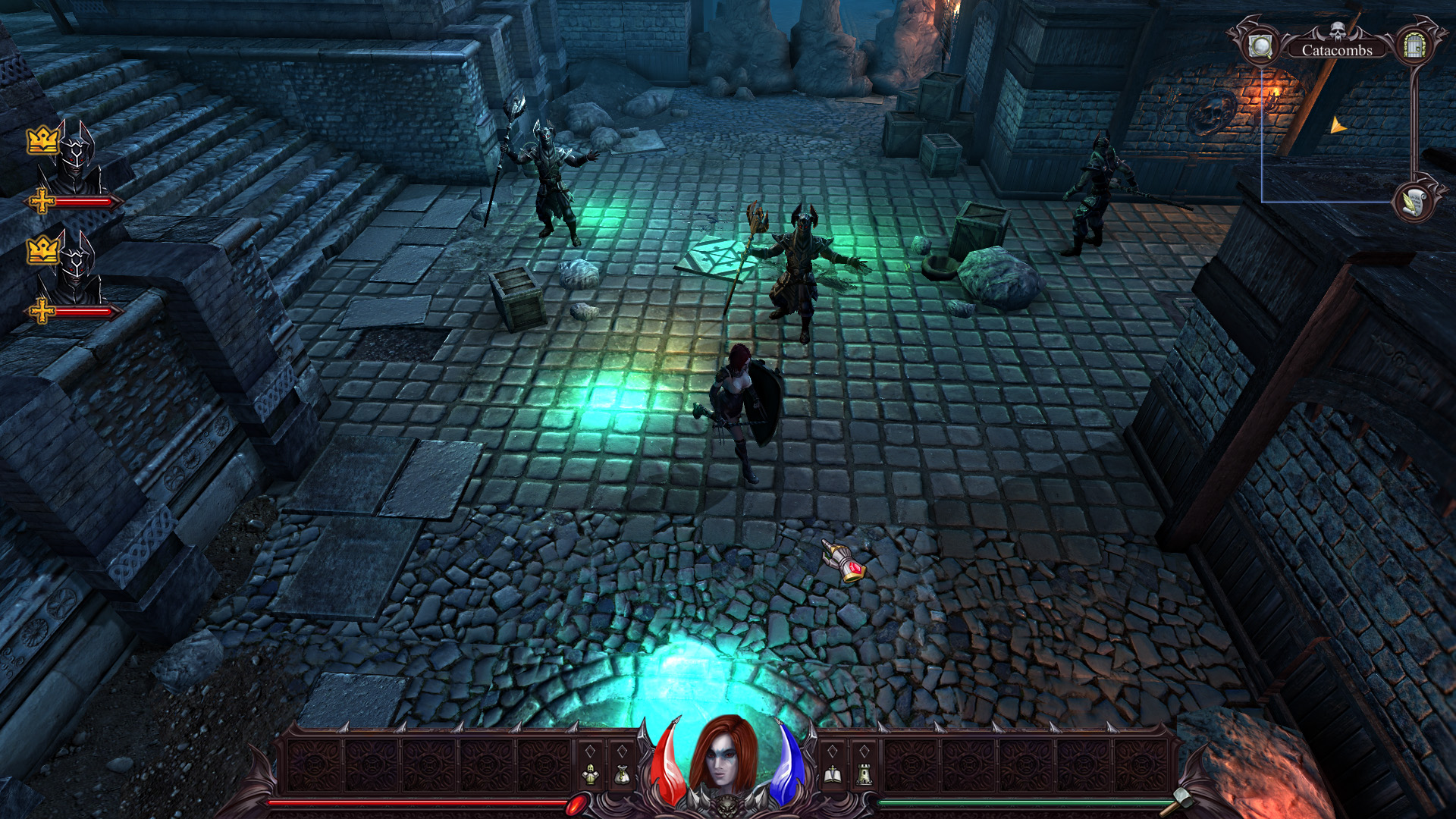 一旦玩家需要休息,他们就可以使用魔法肖像回到自己的城堡。他们可以在城堡里购物,升级道具,学习技能,也可以在棺材里休息。游戏中的所有道具都可以升级,所以玩家需要花些时间升级道具。
