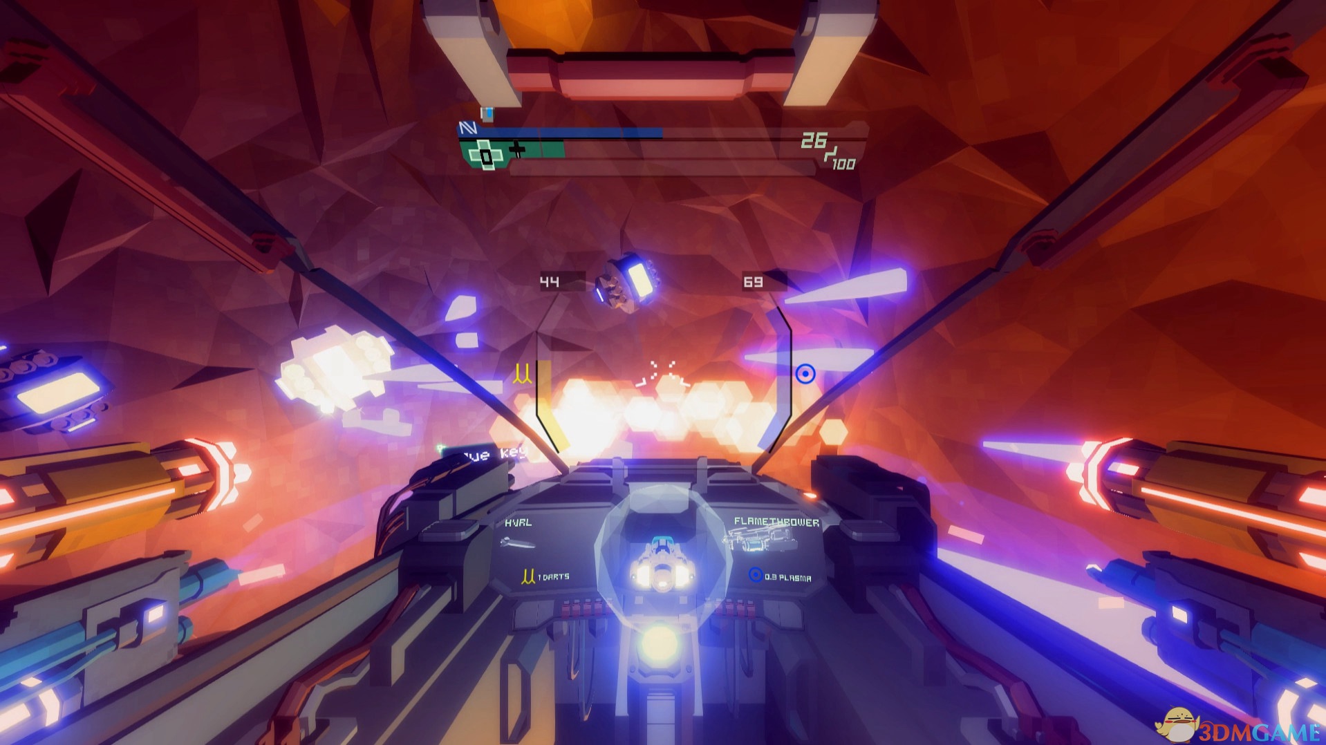 在该游戏中玩家将扮演一名孤胆英雄,你将驾驶自己的飞行器在一个巨大的设施中穿梭,你的目的很简单,就是掠夺古老的技术,当干掉敌人之后,他们的能量可供你补给使用,同时爆出的一些物品将对你的升级有所帮助。