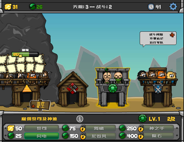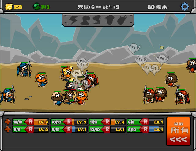 想要大规模集体撤退,可以点右下角的Reteat All来执行全军撤退。在画面上方有玩家可以用的神力,神力必须在等等的整备画面中利用僧侣来获得。