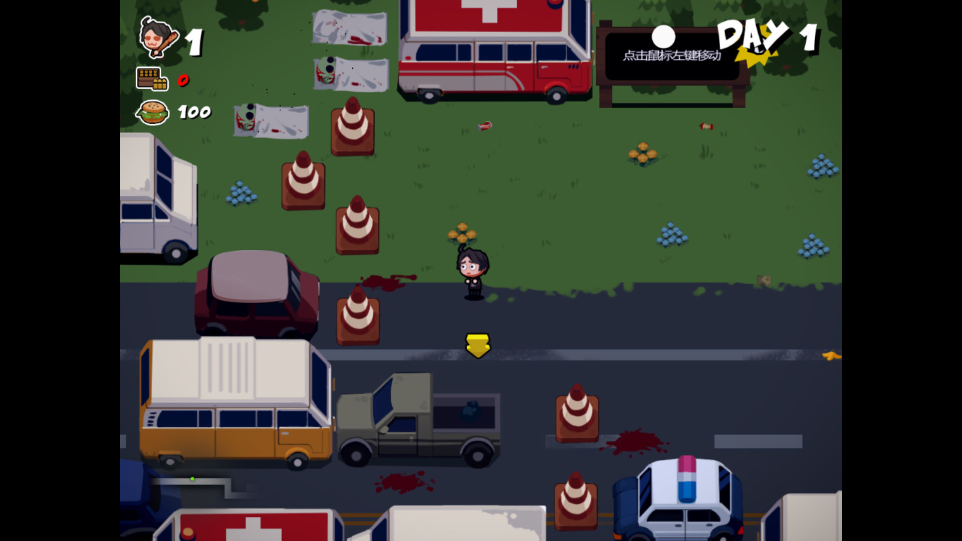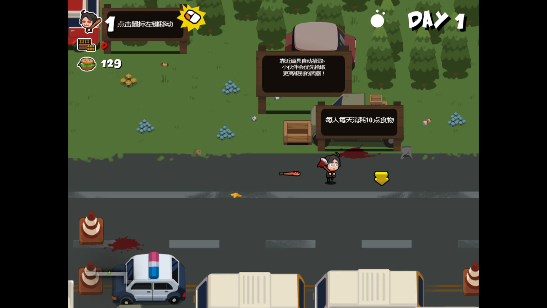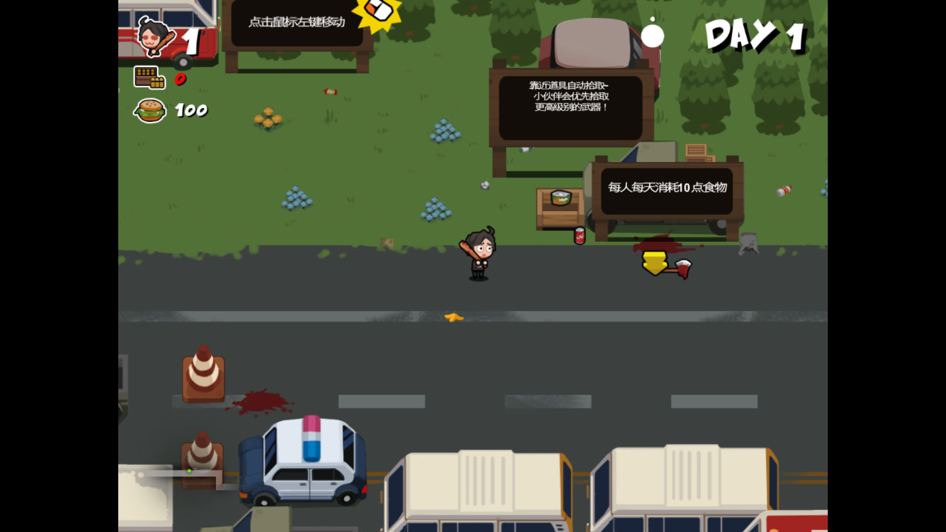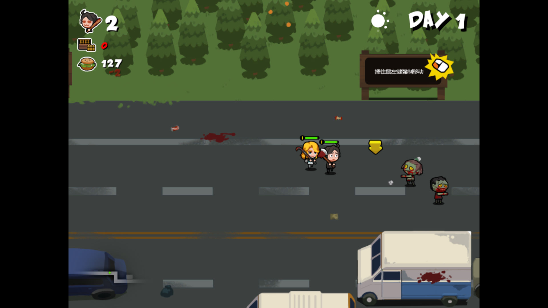 操作极其简单,只需要鼠标左右键操作,靠近丧尸松开鼠标自动攻击左键点击地面移动,左键长按优先强制移动,右键切换武器,靠近道具自动拾取并使用(优先拾取最高等级的武器)