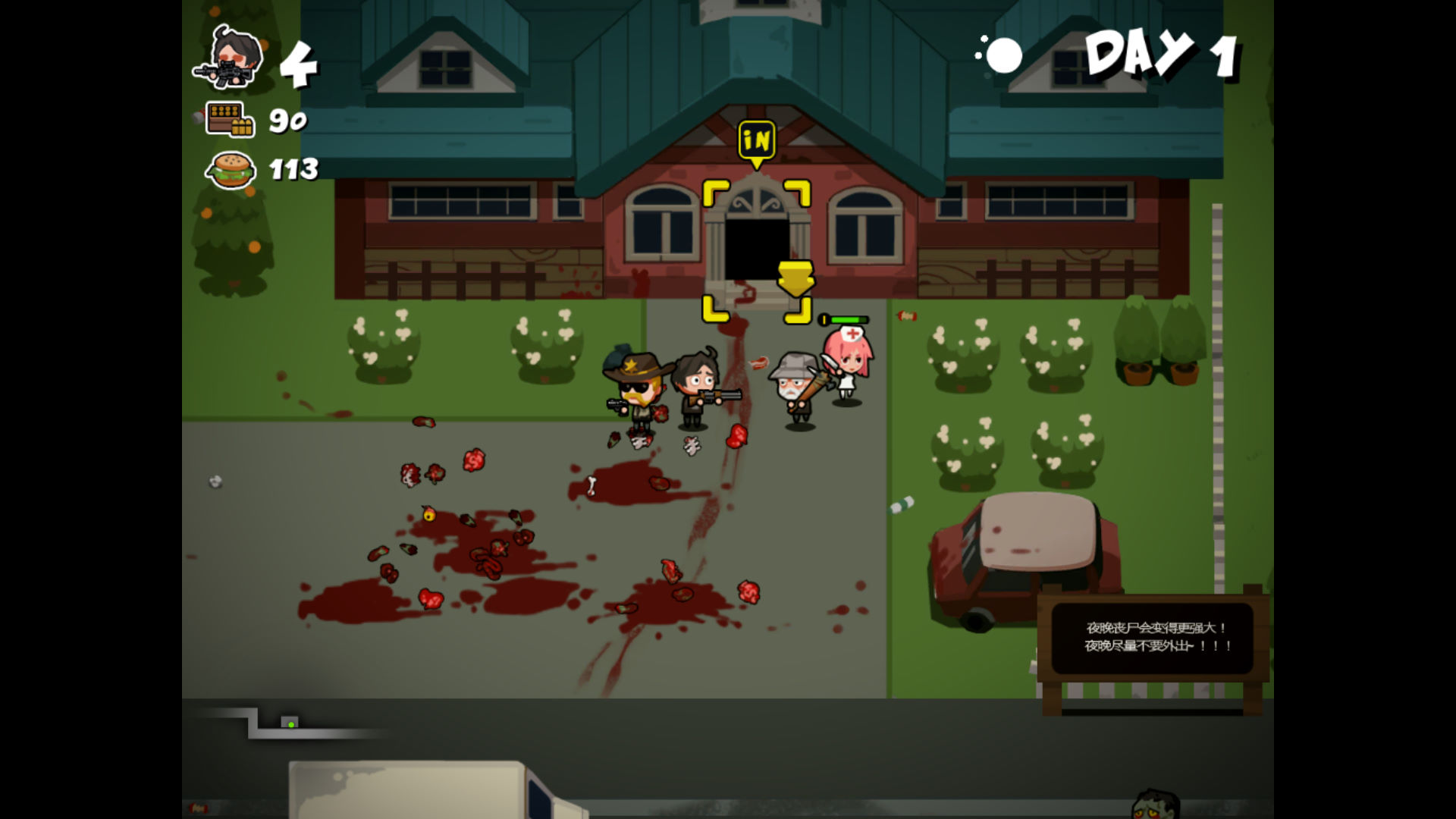 你需要探索房间和地图,搜集在末日可供生存的 食物、药品、弹药和武器,同时更多的幸存者加入,扩大队伍规模,一起在末日中生存下去。