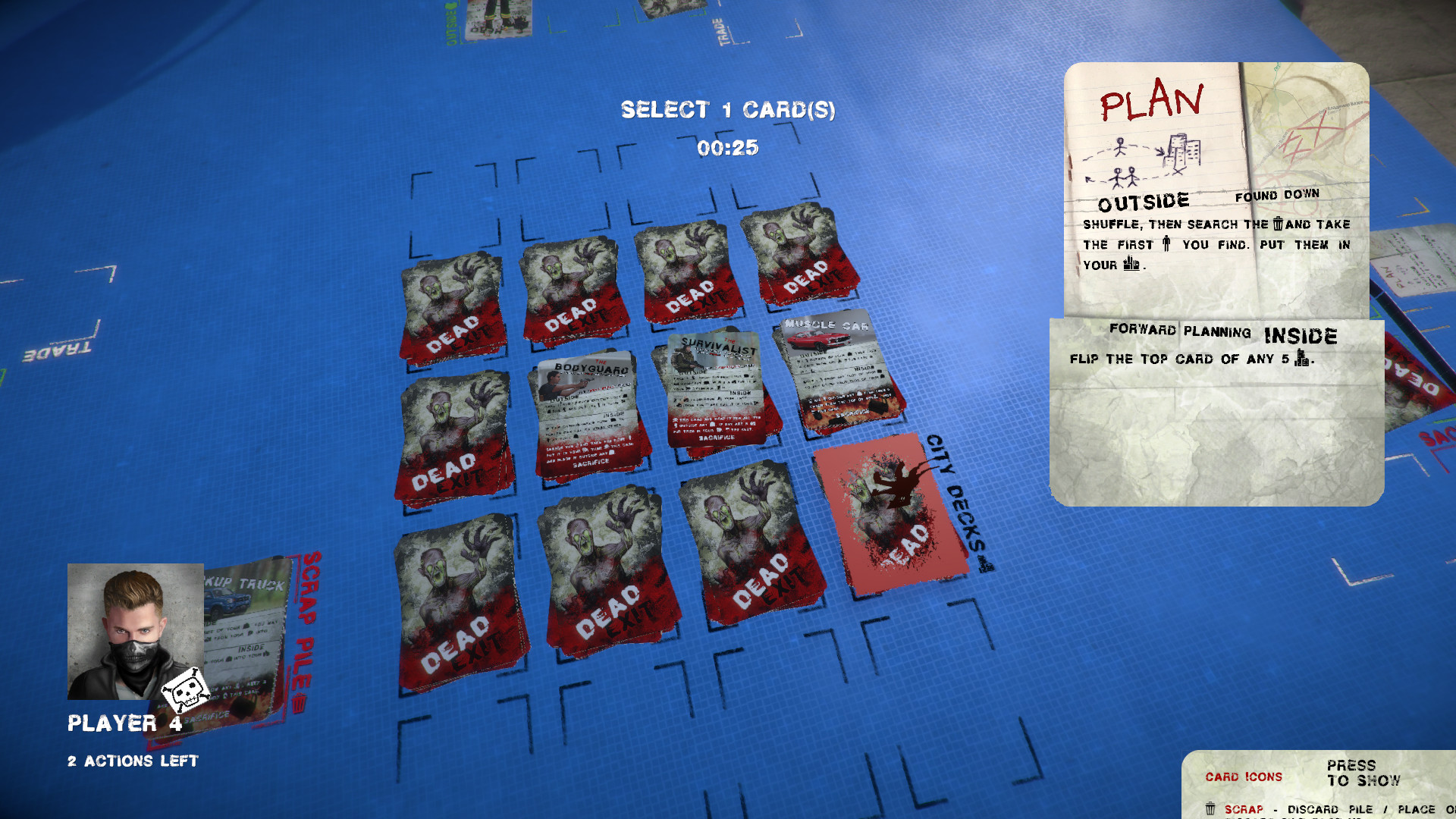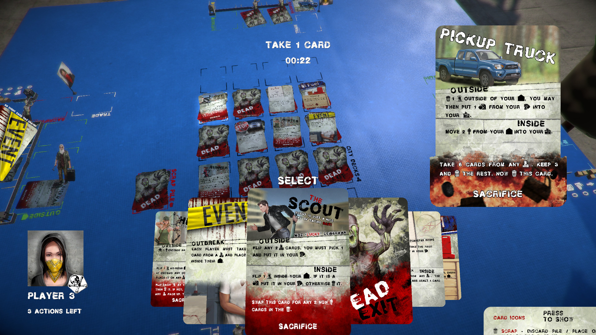 《死亡终结(Dead Exit)》是RadiationBurn制作发行的一款丧尸题材的卡牌策略游戏。玩家可以单人游戏,也可以和朋友一起合作游戏或者和朋友们对战。玩家需要管理好自己的资源,并且逃出这座满是丧尸的城市。