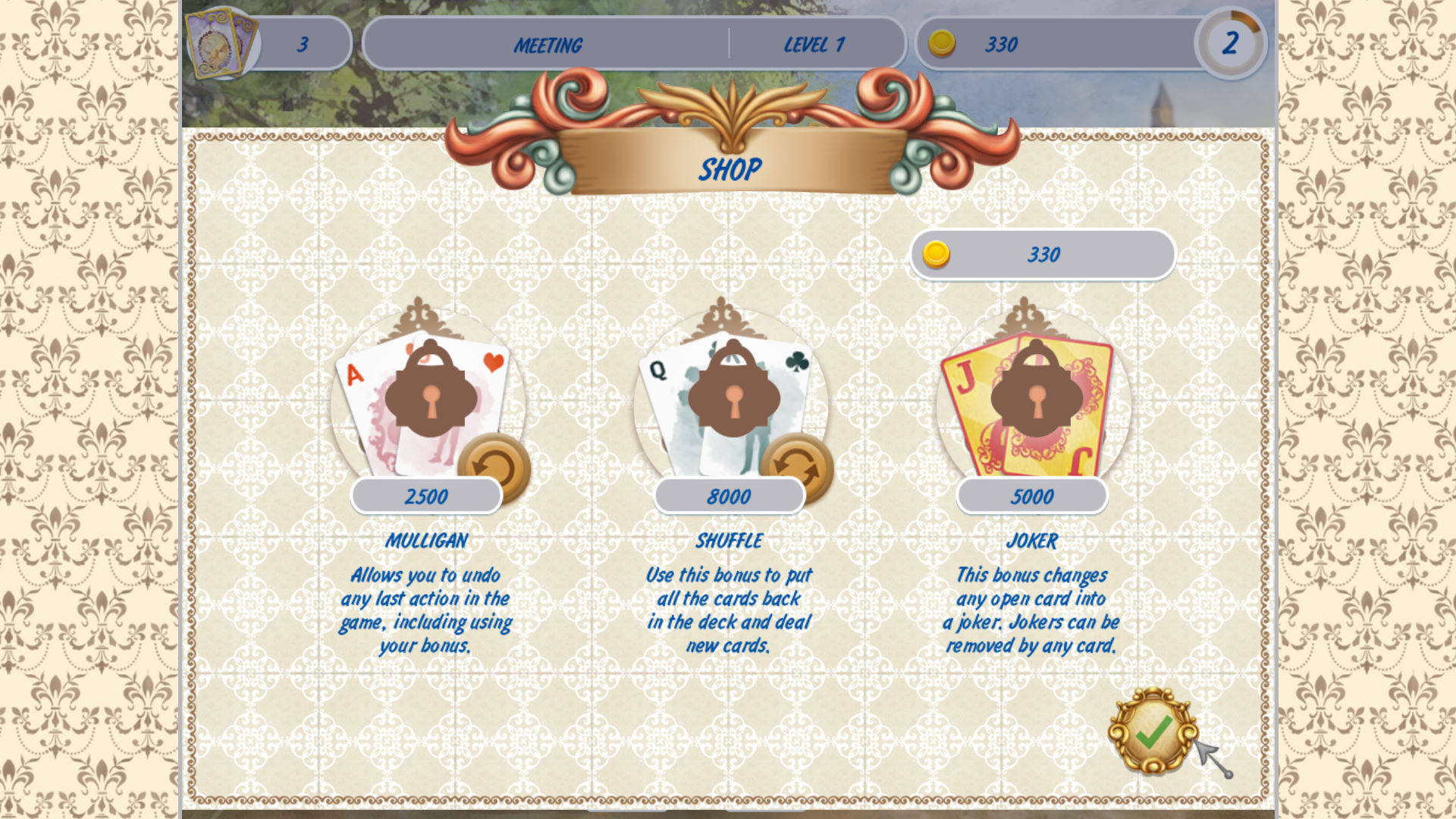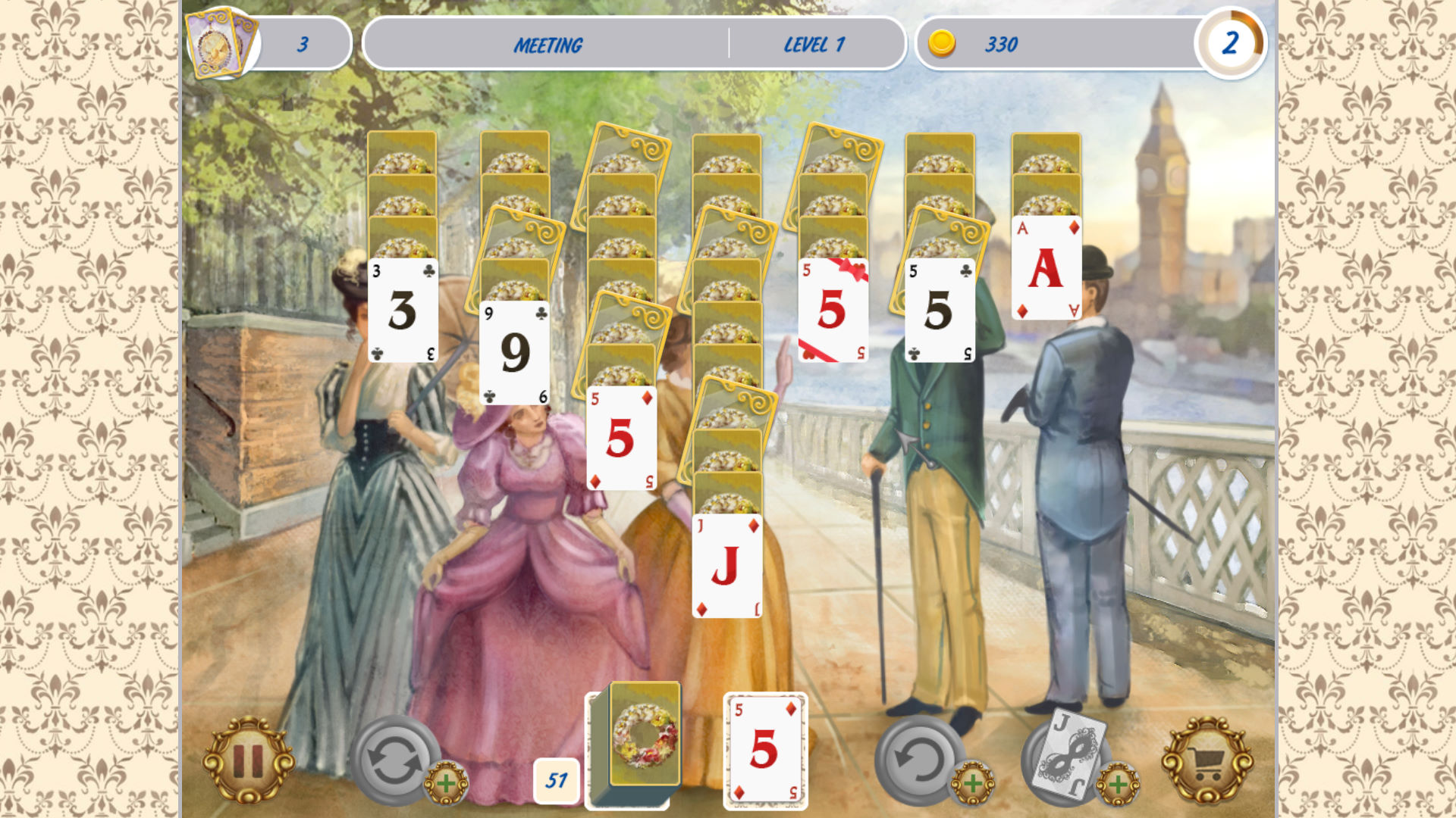 《纸牌游戏:维多利亚野餐2(Solitaire Victorian Picnic 2))》是由Bigfish制作发行的一款益智纸牌类游戏。这是《纸牌游戏:维多利亚野餐》的续作。喜欢休闲纸牌的朋友的不要错过。