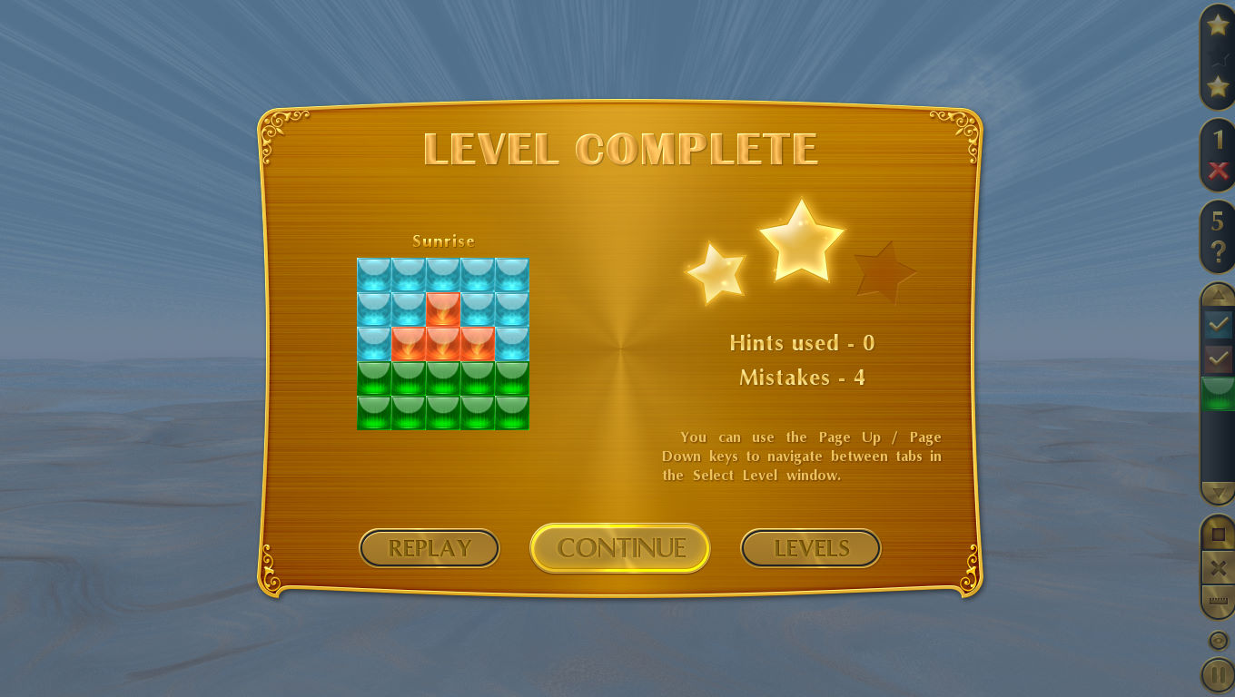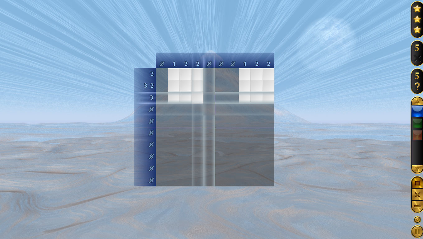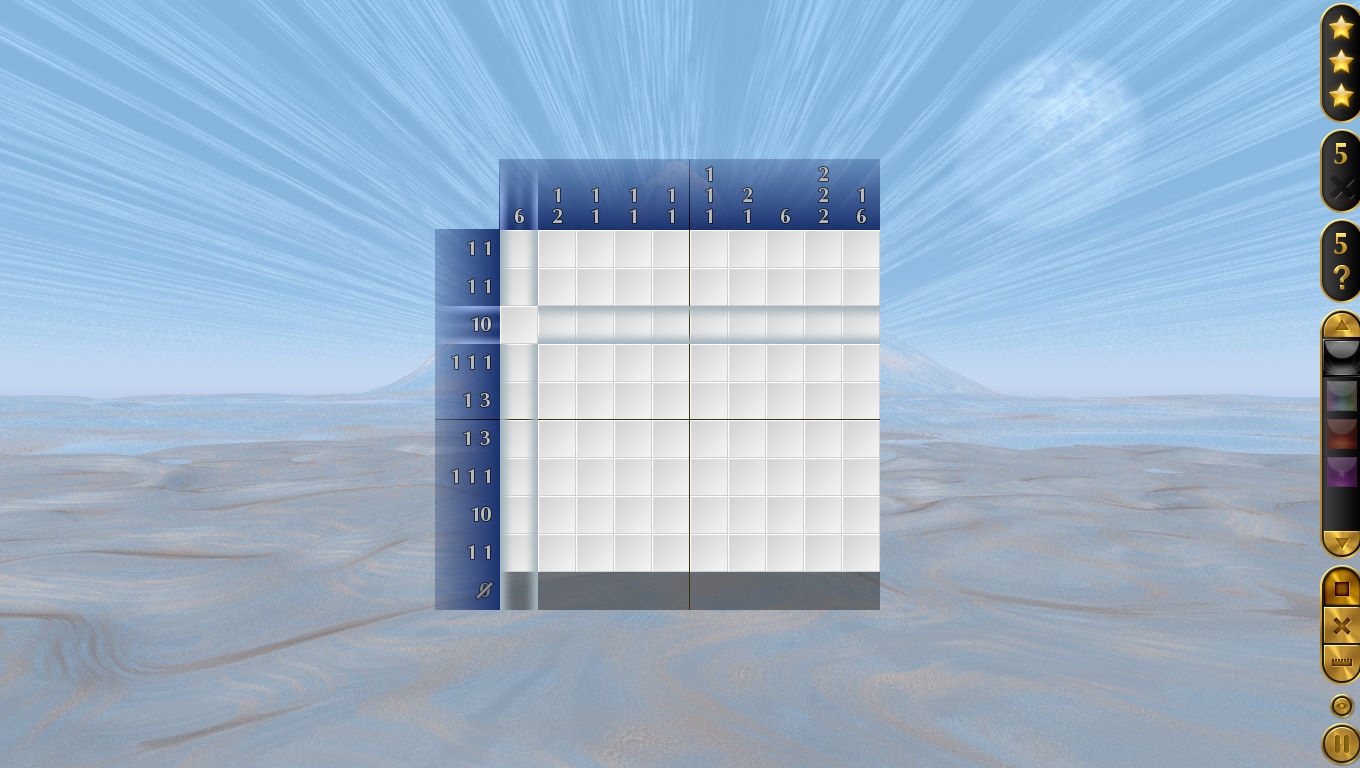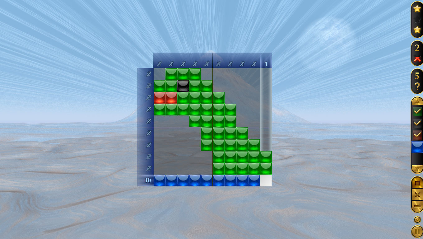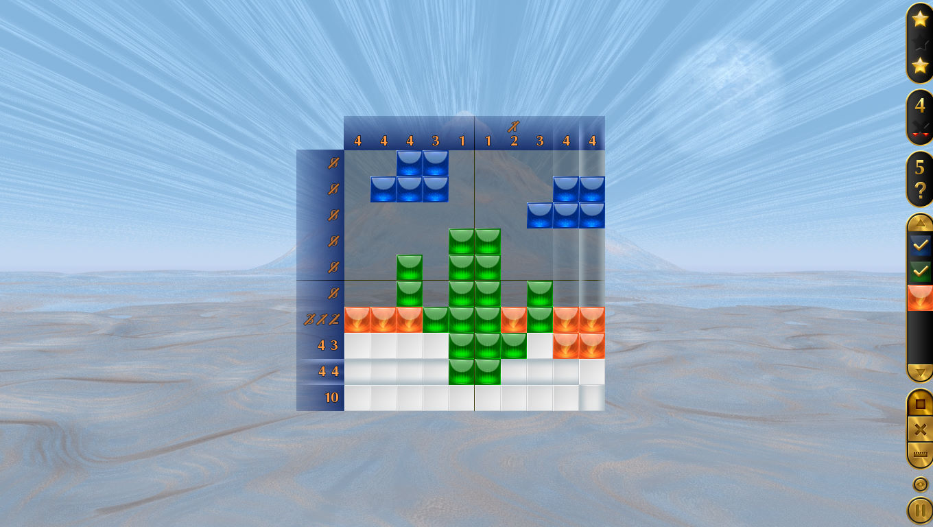 0人《水晶马赛克(Crystal Mosaic)》是BigFish制作发行的一款拼图类益智小游戏。游戏和电脑扫雷类似,留意左边和上边的数字,每个数字代表有几个方块,然后开始填充不同颜色的拼图。