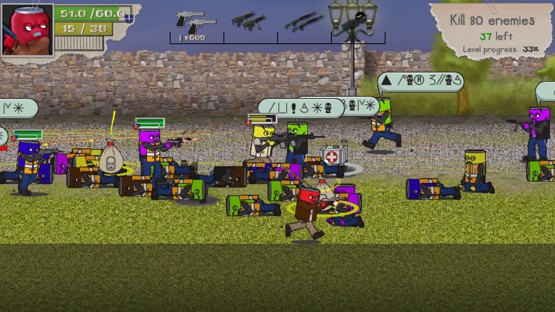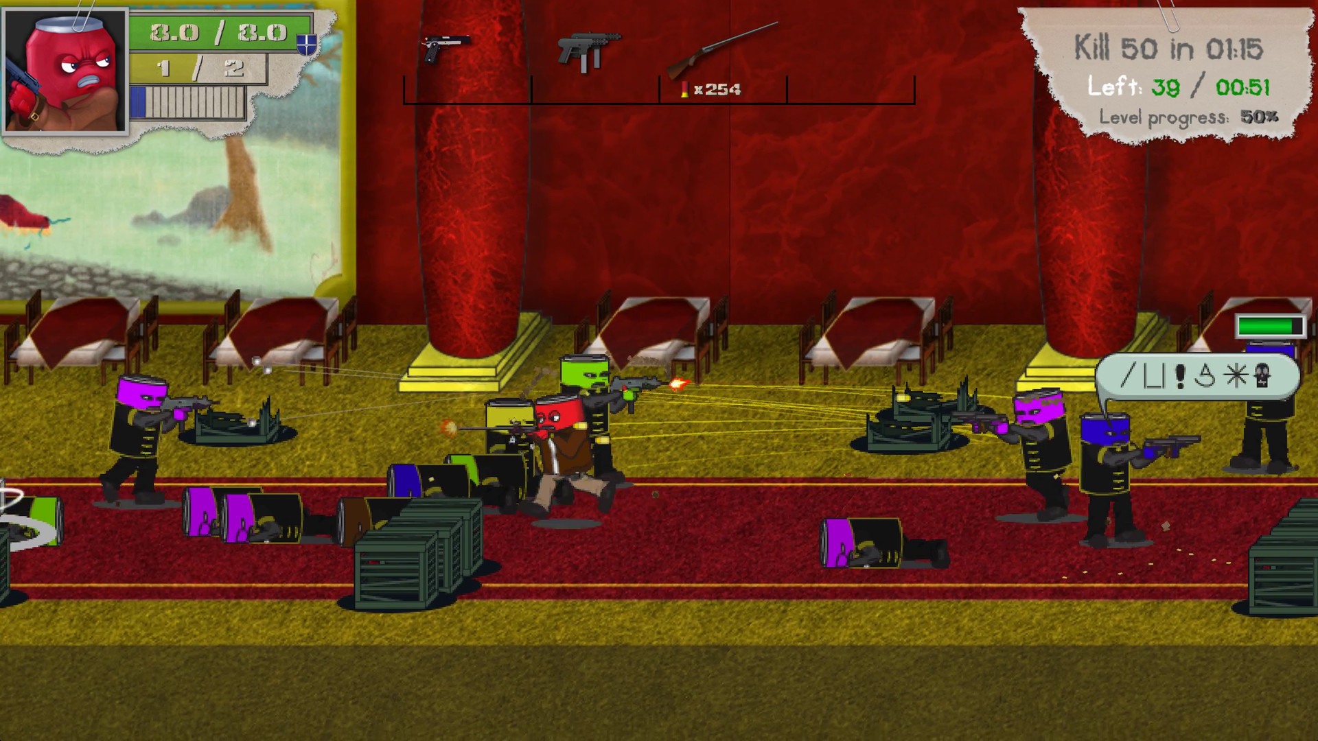 sodacity是基于大量经典动作游戏从SNES时代但主要游戏机制是拍摄,所以我们结束了一个射击的怪怪的,倾斜的,2.5D的经典动作游戏的视角。