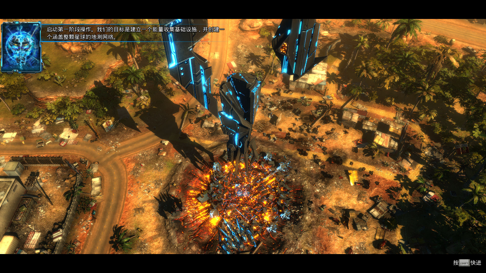 游戏采用了科幻风格的场景设计,外星防御塔、人类的机械化战争机器以及城市建筑等都具有独特的风格,营造出了强烈的科幻氛围。