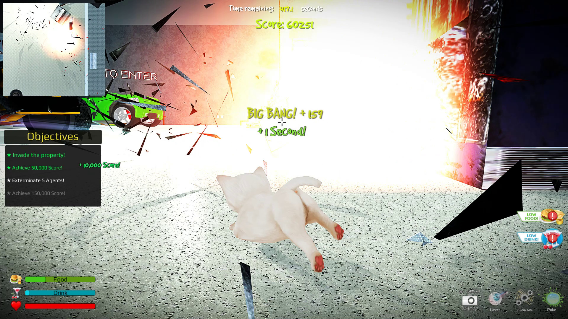 非常发泄的一款游戏,猫咪除了要吃喝拉撒以外其他的简直是猫型坦克,太可怕了什么都能够破坏,还能开车!!简直爆炸,喜欢的玩家们可以下载尝试,相当具有可玩性。