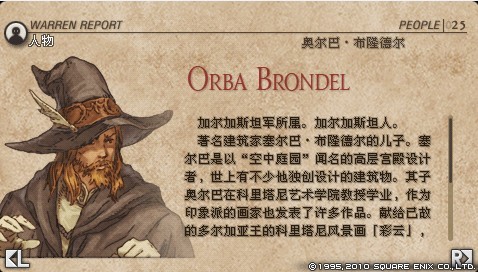 12.卡诺普斯·霍尔夫(Canopus Wolph):种族:捷诺比亚人(Zenobia);年龄:48岁;生日:暗龙之月5日;简介:原新生捷诺比亚王国魔兽军团团长,出身于捷诺比亚王国夏罗姆地方的培夏瓦尔(Peshawar)都市有翼人,和兰斯洛一样因为骑士团的不幸事件而被剥夺身份流放国外。由于有翼人有着一般正常人的三倍寿命,因此外表看起来非常年轻,加上又可以使用风之力尸展出特殊技巧,因此又有“风使”的称号。