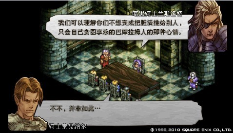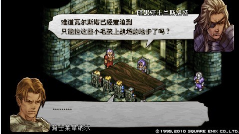 6.兰斯洛·塔尔塔罗斯(Lanselot Tartaros):种族:罗迪斯人(Lodis);年龄:38岁;生日:地龙之月22日;简介:位在北方大陆的罗迪斯教国为了回应与巴克拉姆的指导者布兰达的密约,而被派送到法雷利亚岛的教皇直属最强骑士团“暗黑骑士团罗斯罗利安”(The Dark Knights,Roslolian)的总长,据猜测他可能是教皇的左右手。