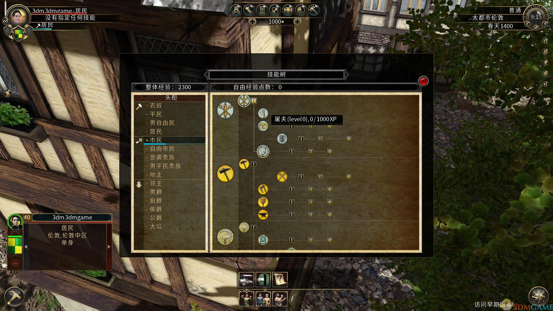 游戏提供多种职业选择,如工匠、商人、政治家、农民、渔民等,每个职业都有独特的技能树,玩家可通过完成任务、学习技能来提升角色能力,还可随时转职,但需满足时间和技能解锁条件。