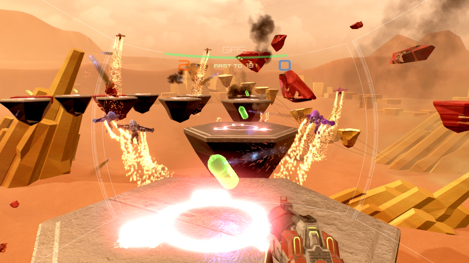 游戏中的所有平台都可以被摧毁。在战略上摧毁这个块,这样你的对手就会在平台上着陆。也许这是一种比直接射杀球员更有效的策略。游戏很简单,但很有趣。游戏很激烈,你可以随时拿起游戏。玩几分钟,看看你和你的对手破坏的世界,这是极大的满足。