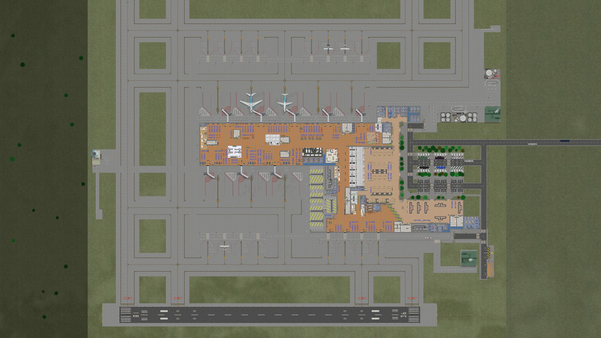 你需要从零开始,包括地板、墙壁等等各种基础构建和机场跑道、滑行道和其他必要的结构。
