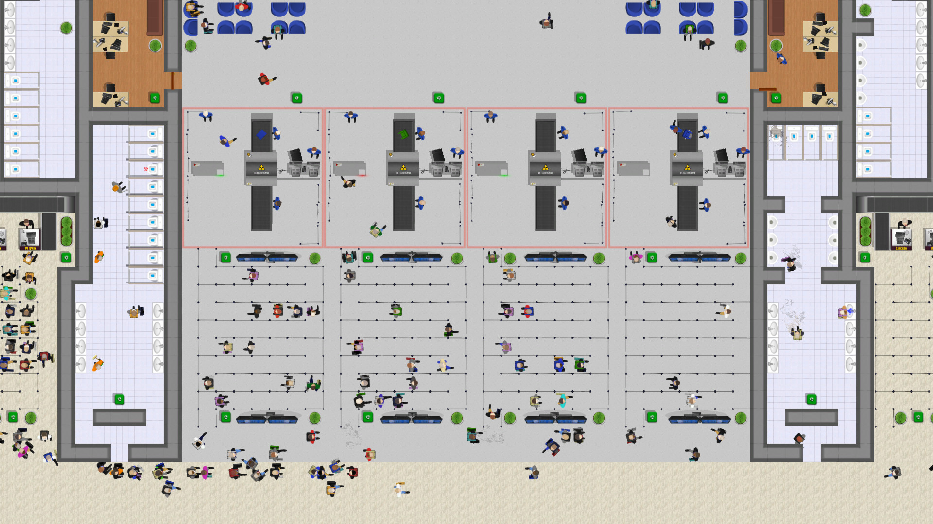 乘客们需要排队等候、登记登机,通过安检,然后自己娱乐,直到他们的航班准备登机。