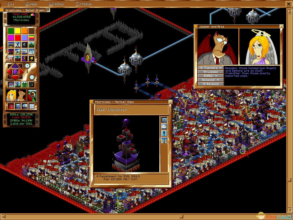 《末世(Afterlife)》是Lucasfilm制作的一款模拟经营游戏。游戏操作和内容都类似于模拟城市,只是在这里需要同时管理天堂和地狱,保持和谐平衡,以期轮回转世能够顺利地进行。感兴趣的玩家可以下载尝试一下。