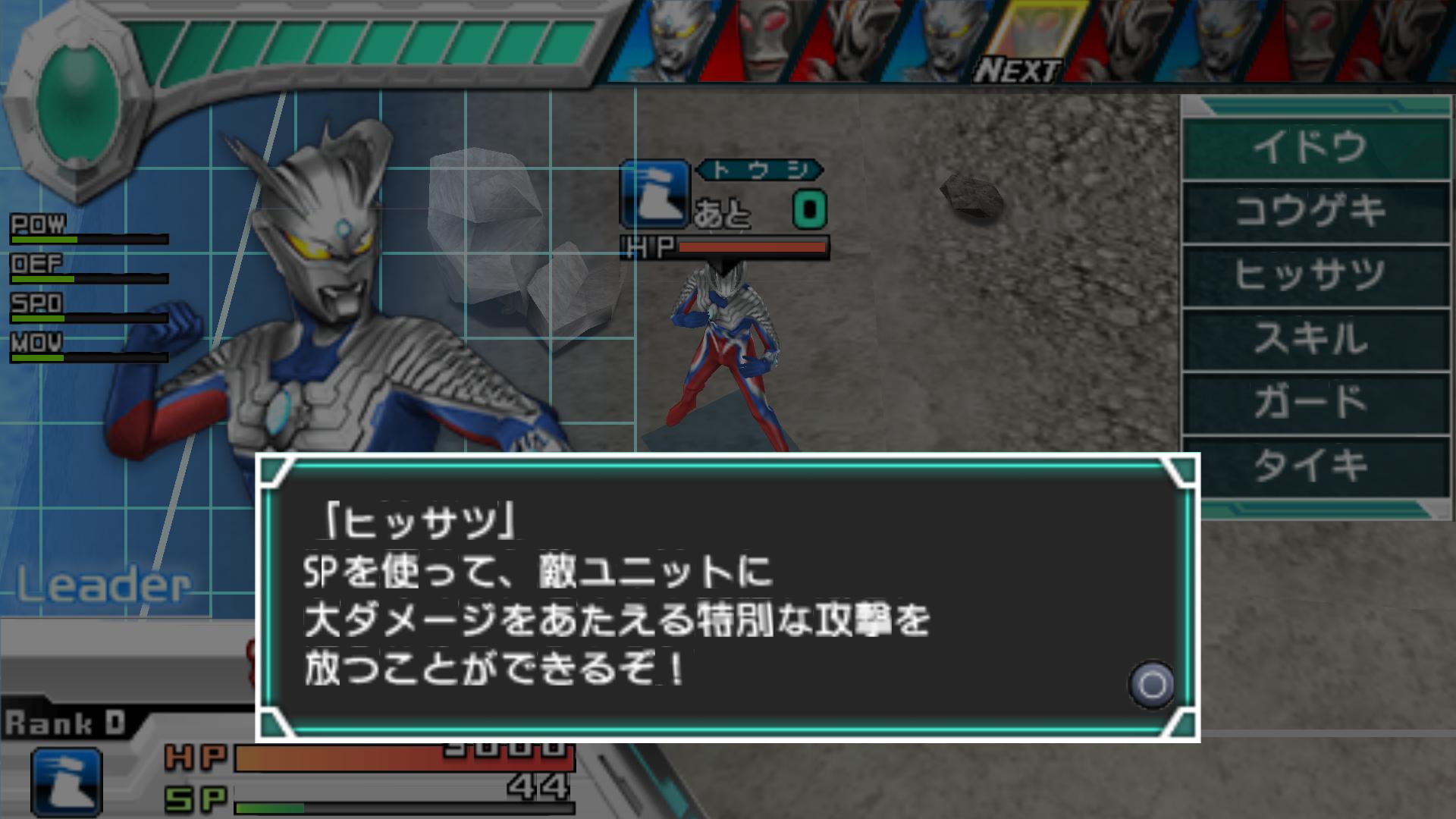 HP即体力,体力为0就退场。SP为技能点,必杀、技能、防御指令都消耗技能点。技能点会随回合逐渐自动回复