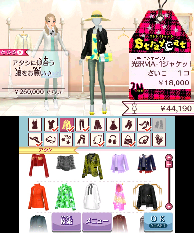 《女生风格4 星光设计师》是款以时尚为题材的游戏,游戏中玩家将扮演时尚服饰店新手店员,依照顾客需求来搭配服饰,以成为深受顾客信赖的一流店长为目标而努力。游戏中玩家将依照顾客的印象,从超过1 万种的时尚商品中挑选出适合的搭配。 可挑选的商品种类包括内衣、上衣、裤子、裙子、洋装、鞋子、帽子等。除了替顾客装扮之外,玩家还可以享受装扮自己分身角色的乐趣,使用从展示会获得或朋友商店购得的物品,在「我的房间」替角色换装,还可以变换彩妆与发型。