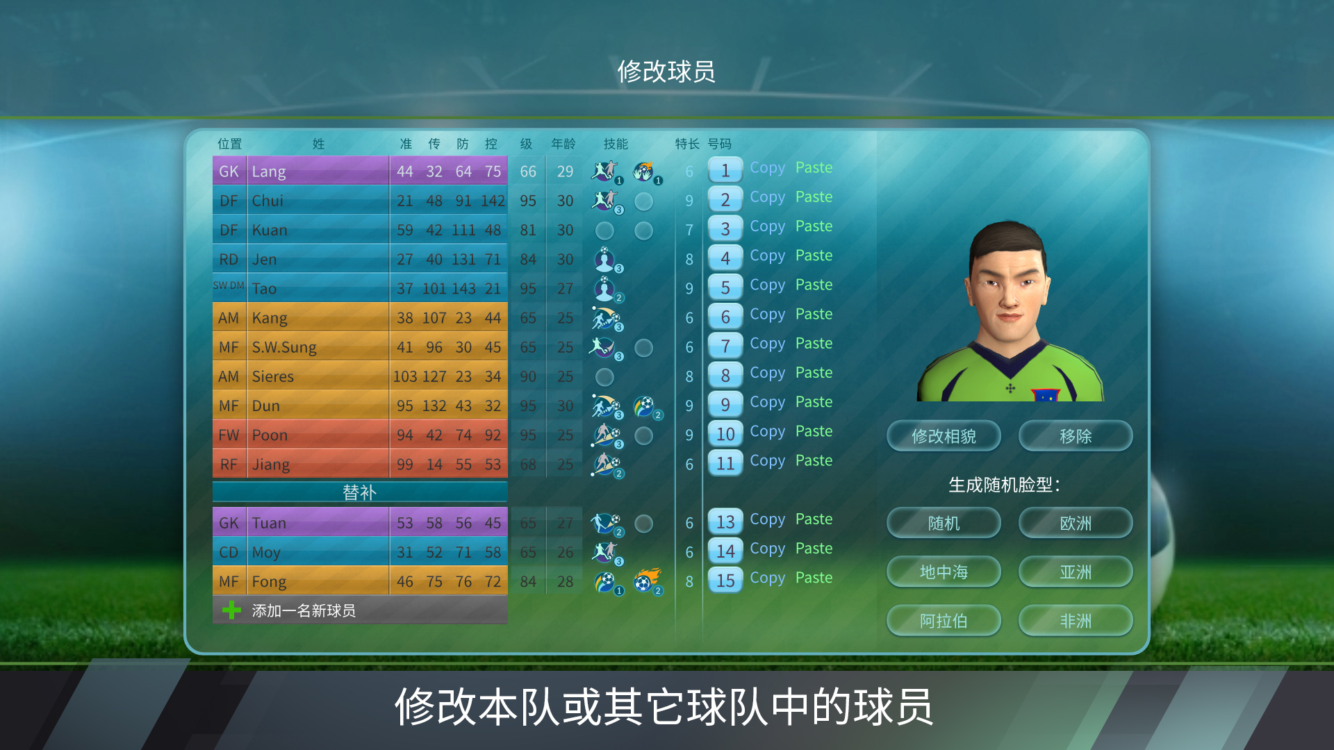 最终面对编辑器,这个编辑器允许你在你的团队中编辑任何的脸,和游戏制作者可以添加自己喜欢的球员的多器官功能障碍综合征。