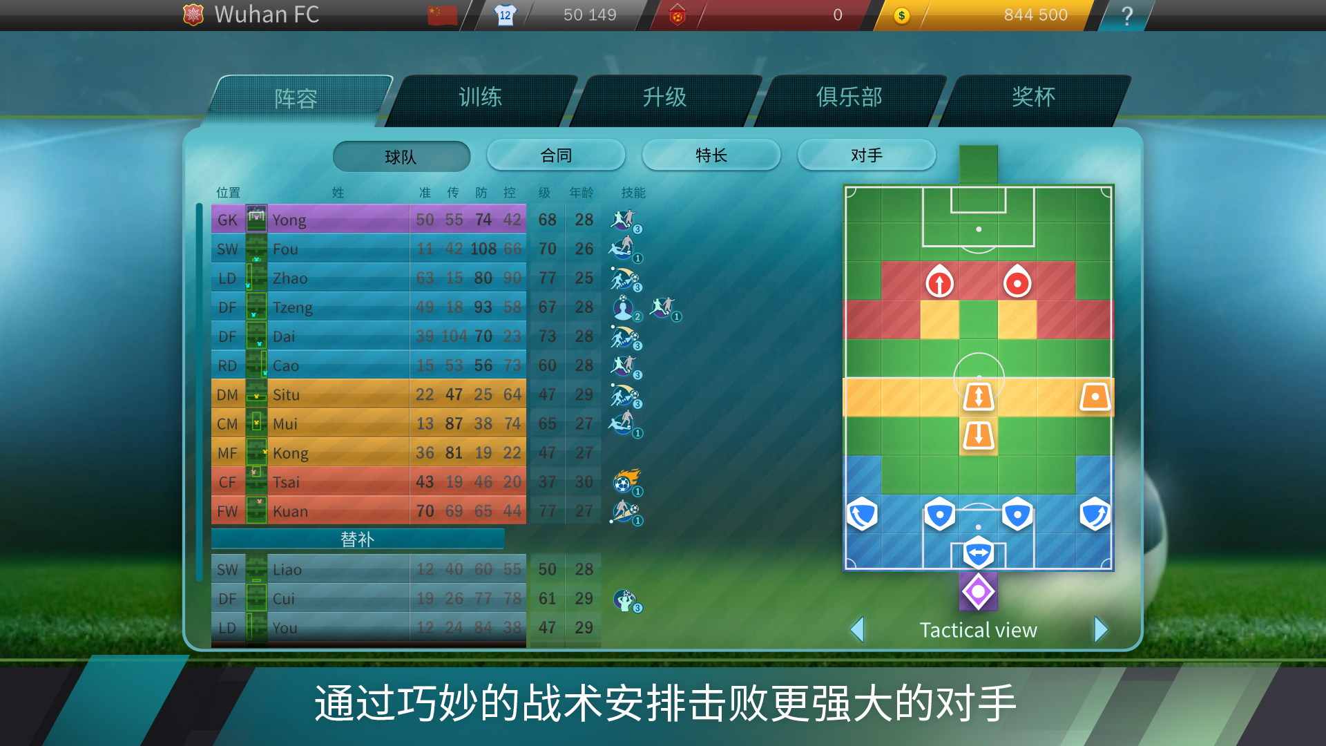 俱乐部的升级:升级你的体育场,投资在年轻球员和俱乐部聘请教练让你更强。