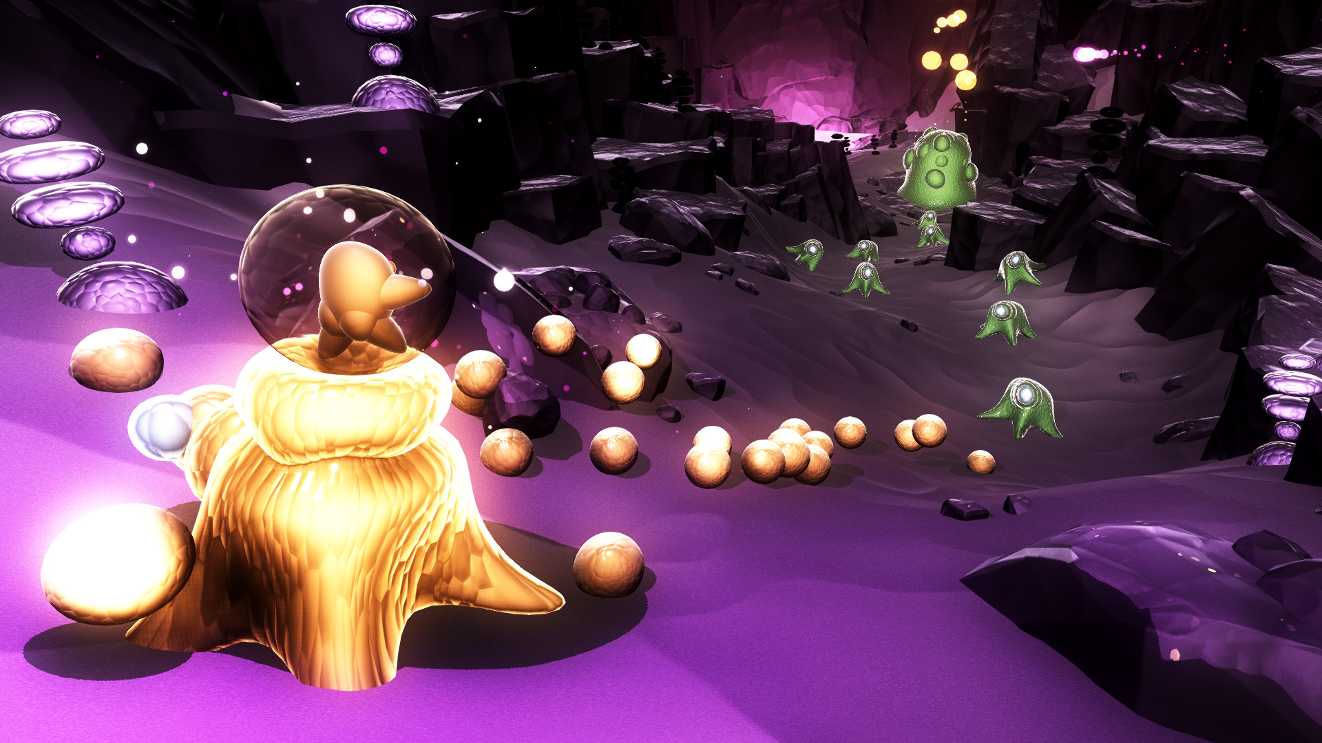 游戏中的唯一目标就是传播快乐。玩家将通过4个各不相同的音乐花园,收集坠落的星辰。玩家所收集的星辰越多,游戏中反馈的视觉和声音效果就越强烈。在花园中散布着能够发出特定音符的音乐植物,这些植物将为玩家营造出丰富的音乐背景。通过轻松温和的挑战来解锁更多新元素,这些元素将根据玩家的游戏风格创造出独特的音乐体验。