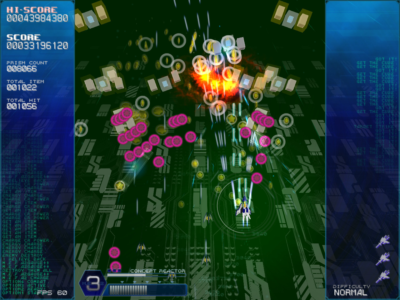 《RefRain棱镜的记忆(RefRain -prism memories-)》是一款玩法传统的飞行弹幕射击类游戏。玩家可以驾驶三种具有不同大招的飞行器来进行游戏,拾取路上的弹药强化自己的武器向敌人投掷成吨的炸弹完成挑战,复古的玩法简单的操作推荐所有喜欢的玩家尝试。