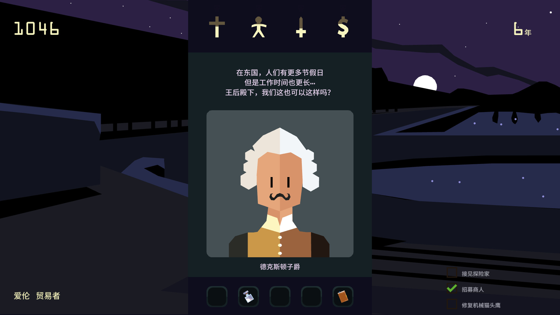 《王权:女王陛下》将需要玩家权衡王国中的四种力量,任何一种力量无论是太多还是太少,都会导致王权的倾覆和女王的驾崩。信使和臣民会向你觐见并提出要求,按照各自的意愿改变权力的平衡,而玩家要做的就是向左或向右滑动,拒绝或接受请求。