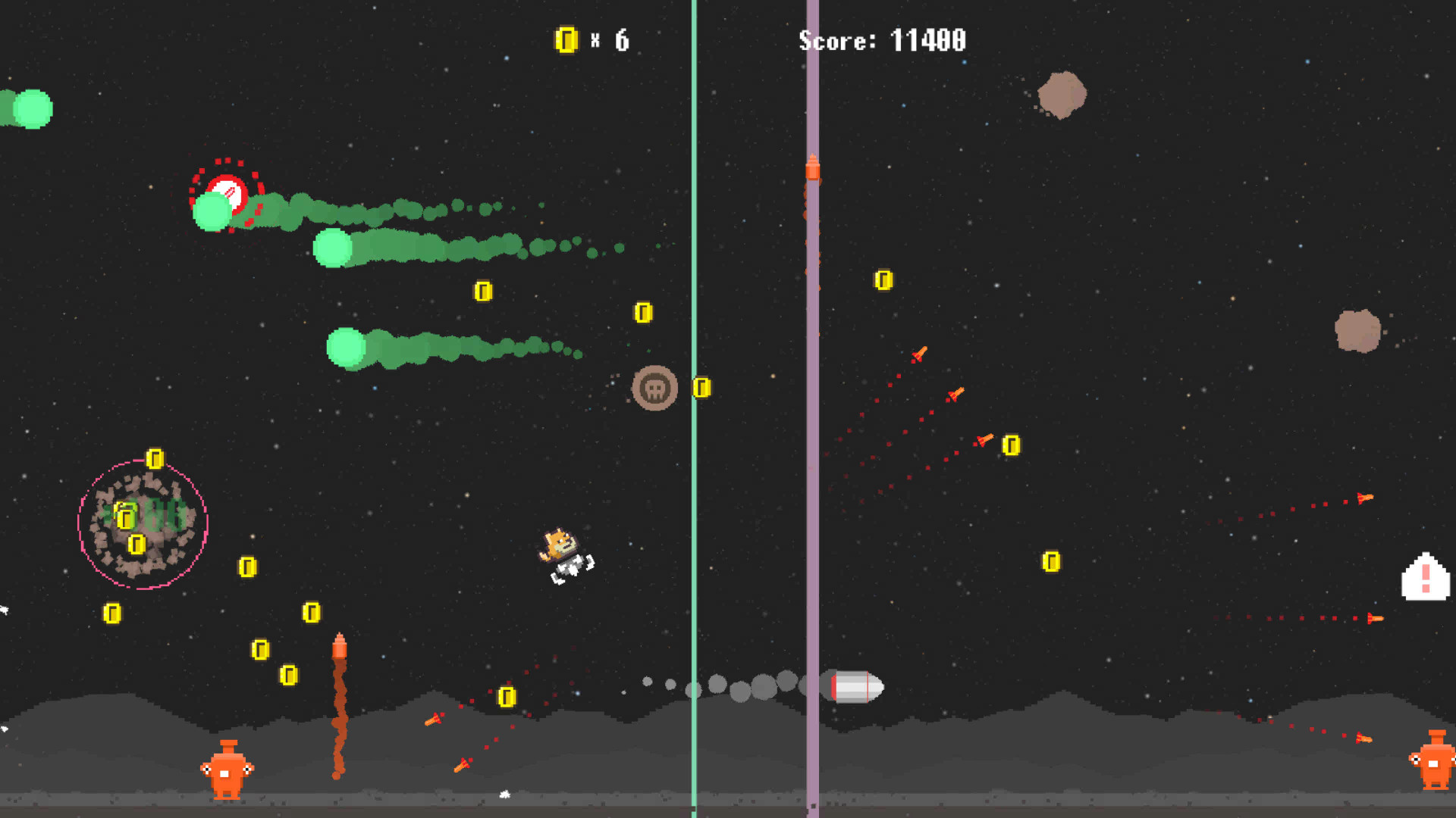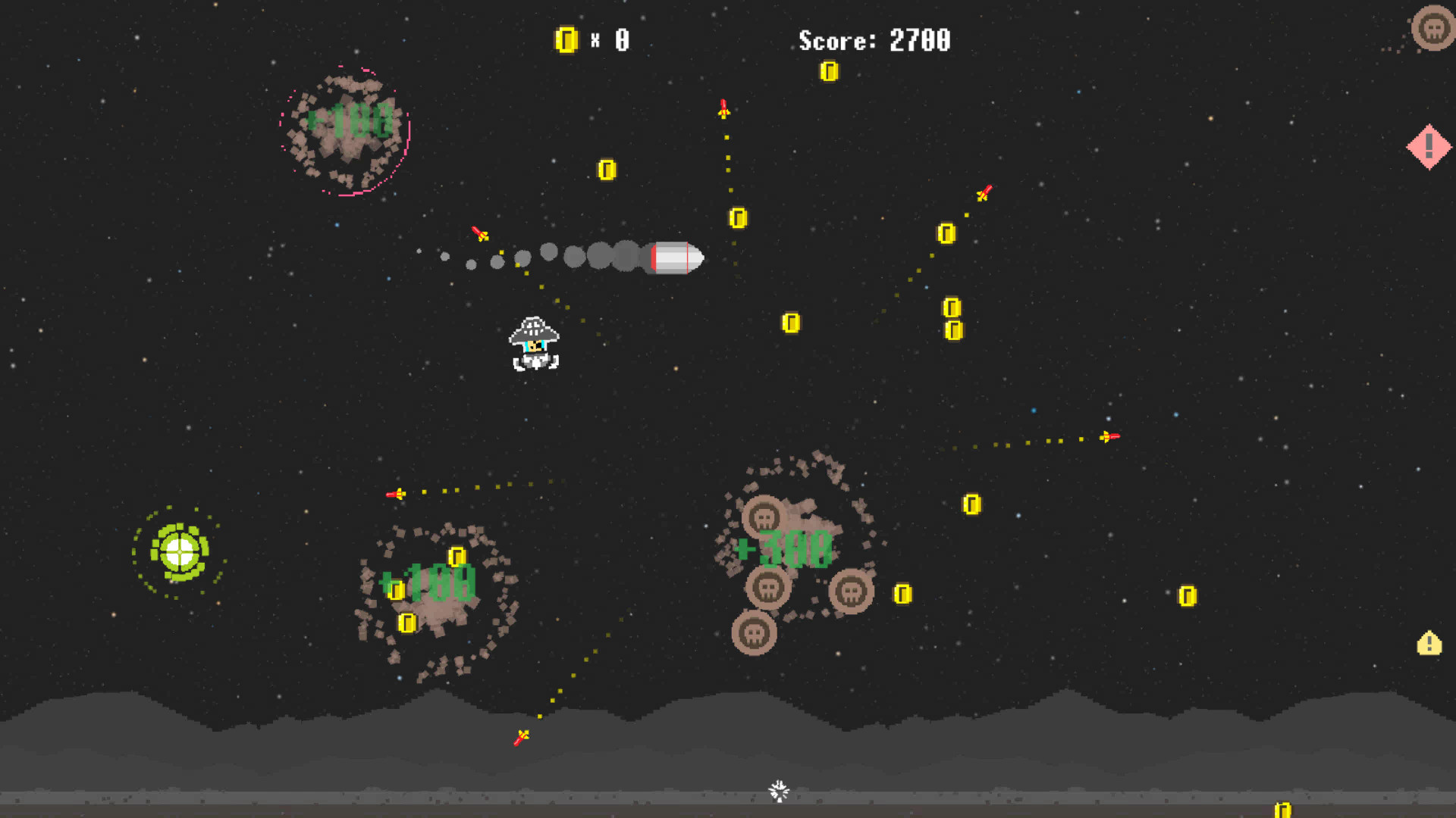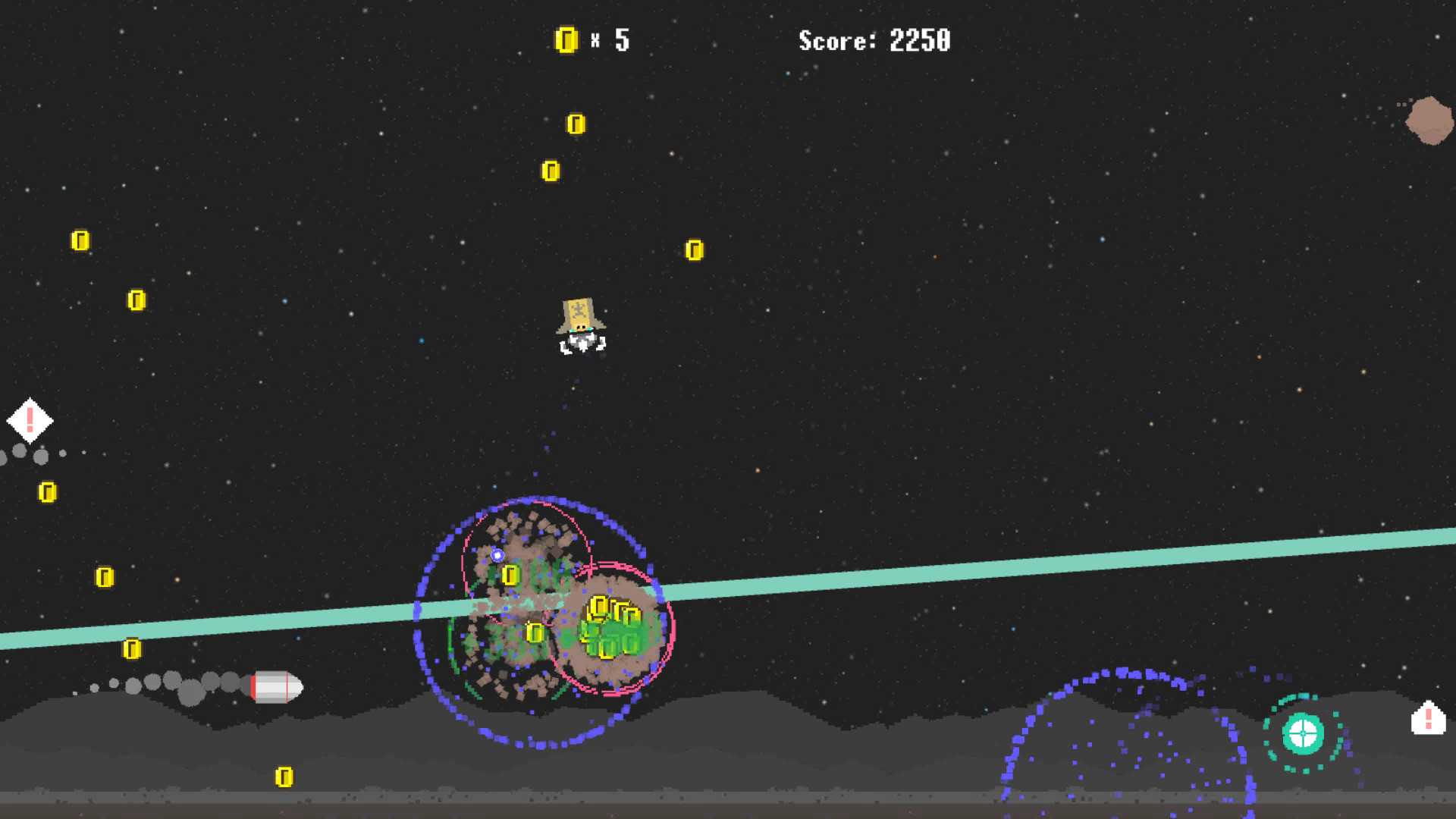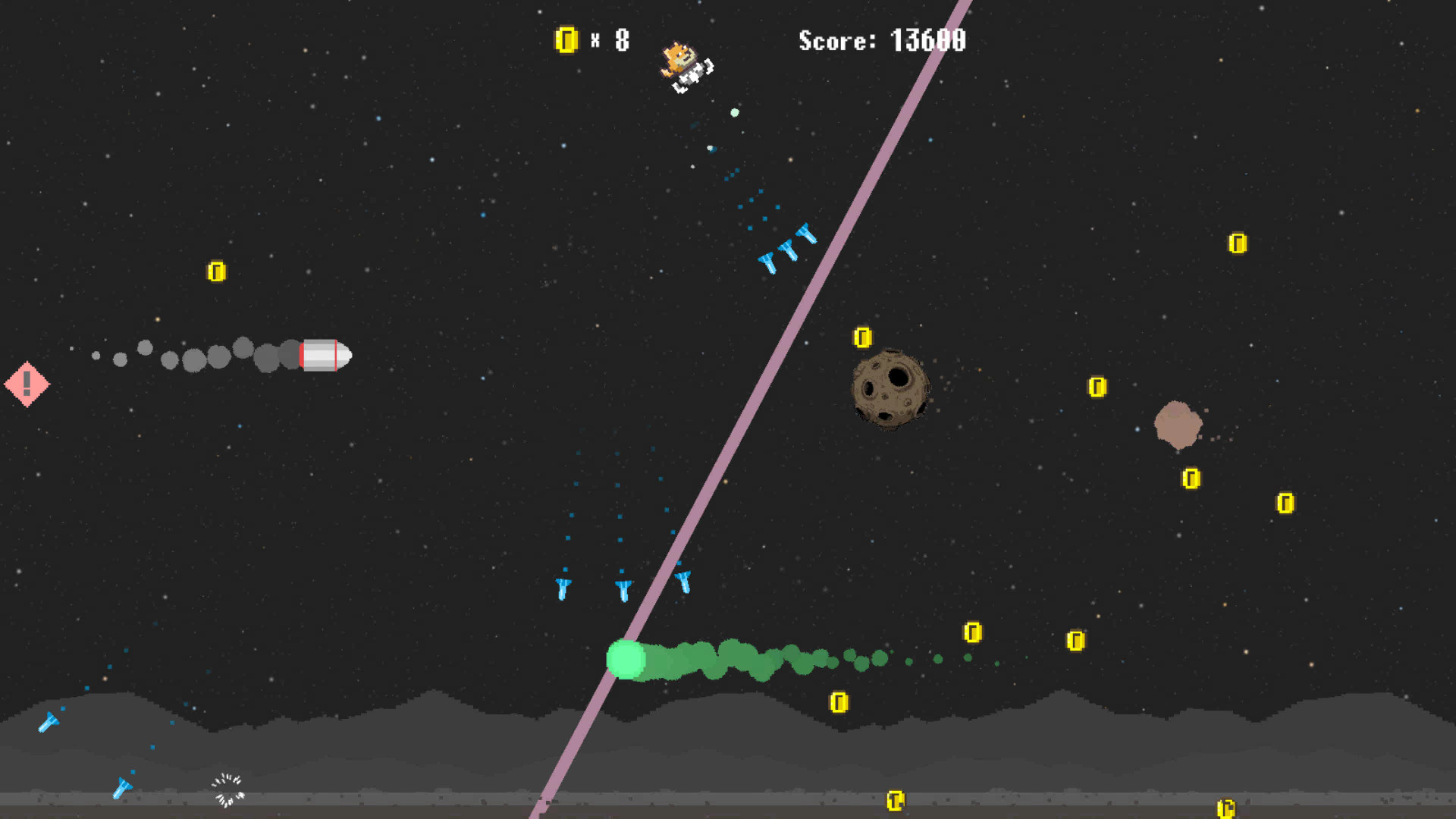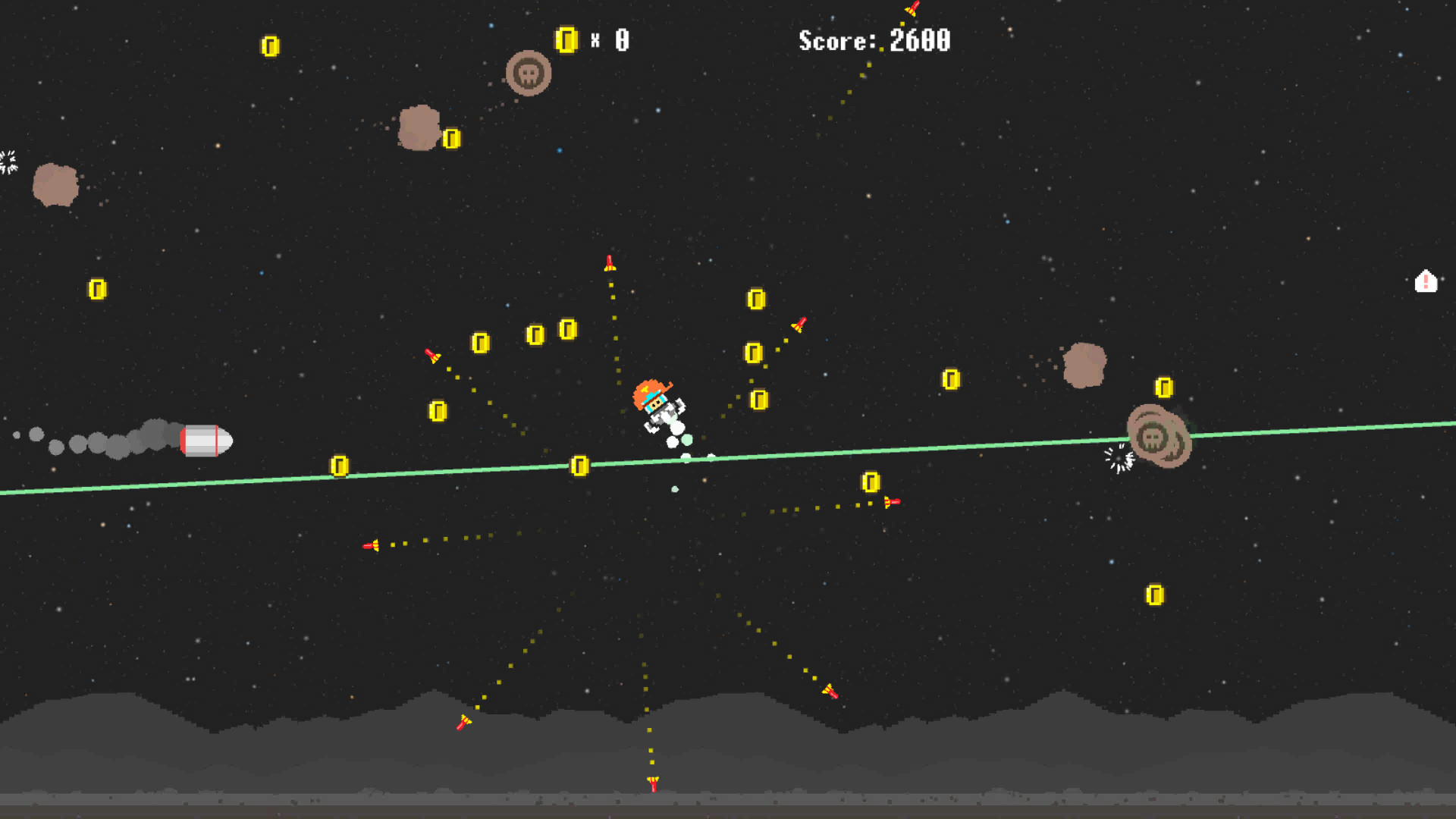 设定在了外太空,这里到处都是空间乱流以及漂浮物,玩家需要不断的躲避小行星带、激光以及随处而来的导弹,除此之外击中导弹可以获取积分和金币。你能够在存活的条件下收集到更多的金币吗?