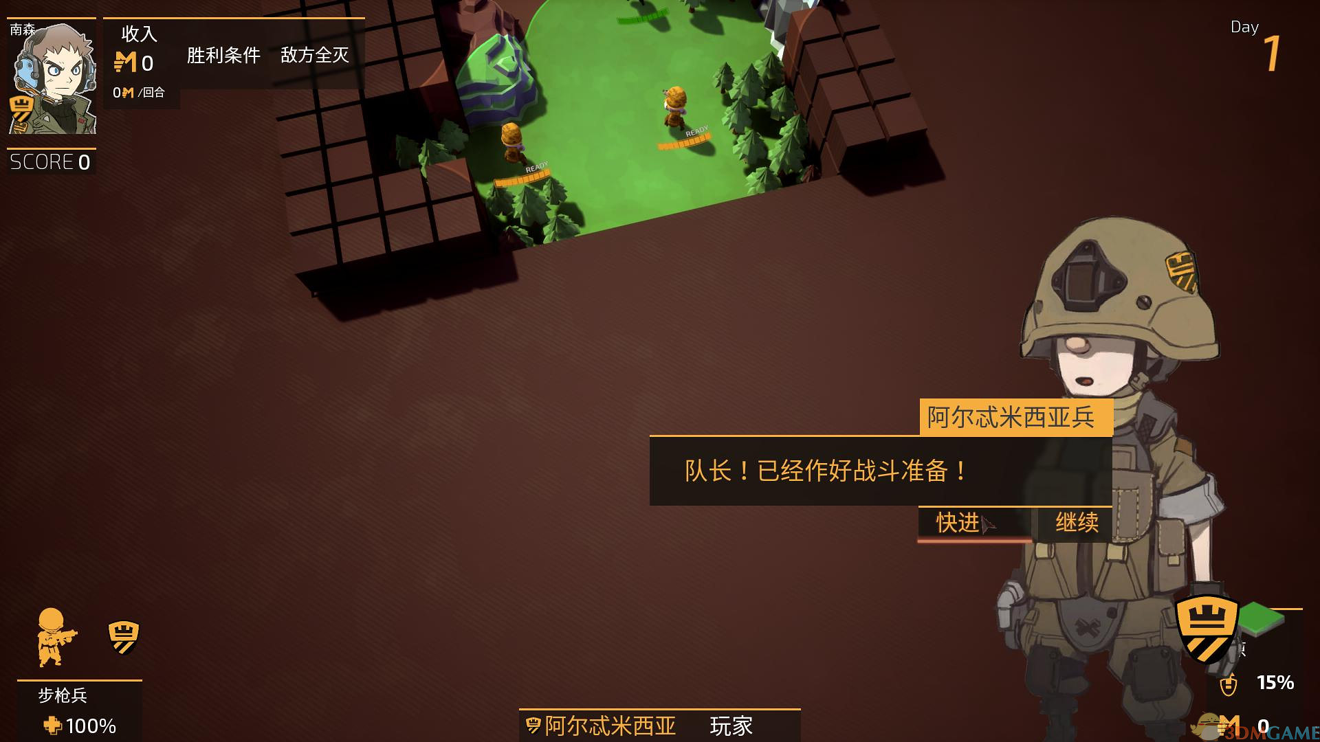 控制15个独特的单位,从基本的机枪兵到先进的舰炮,各有各的优势和弱点;