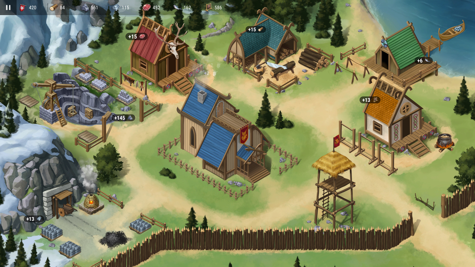 你收集了三艘长船和几十个家族。在海上一个月,你到了这里!定居在一块新的土地---一个新的地方叫家。