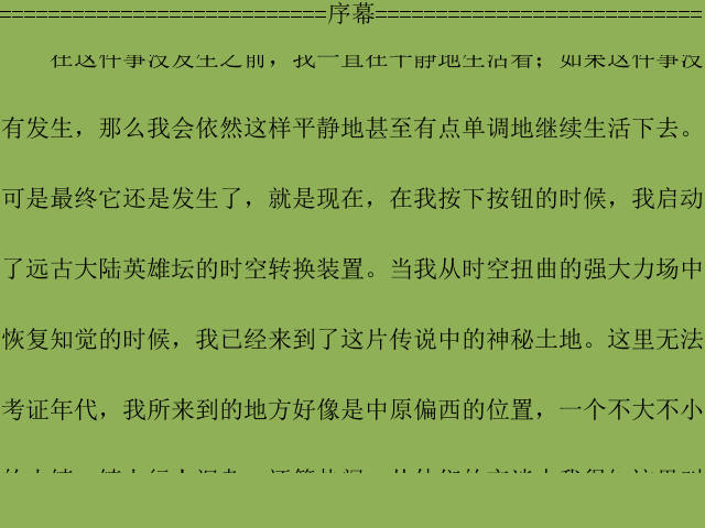 游戏开始时玩家的年龄都被设定为十四岁,可以根据喜好设定性别和属性,然后你就出现在这片大陆的中心位置--平安小镇上。虽然是虚拟世界,可依然延续了真实世界的基本元素,在这里你的年龄会逐渐增长,会口渴也会饿肚子,也需要金钱来过生活。这里的NPC(非玩家控制人物)都在貌似平静中生活着,你的出现会不会改变他们的生活呢?可能只有你才知道。不同于传统意义上的RPG ,在这个虚拟世界里没强制有贯穿始终的故事主线,你可以完全按照个人喜好决定你在这里的人生。你可以勤练武功,惩奸除恶,也可以杀人越货自甘堕落;或者什么都不做,只是四处闲逛,消磨时间。一切都由你自己把握。